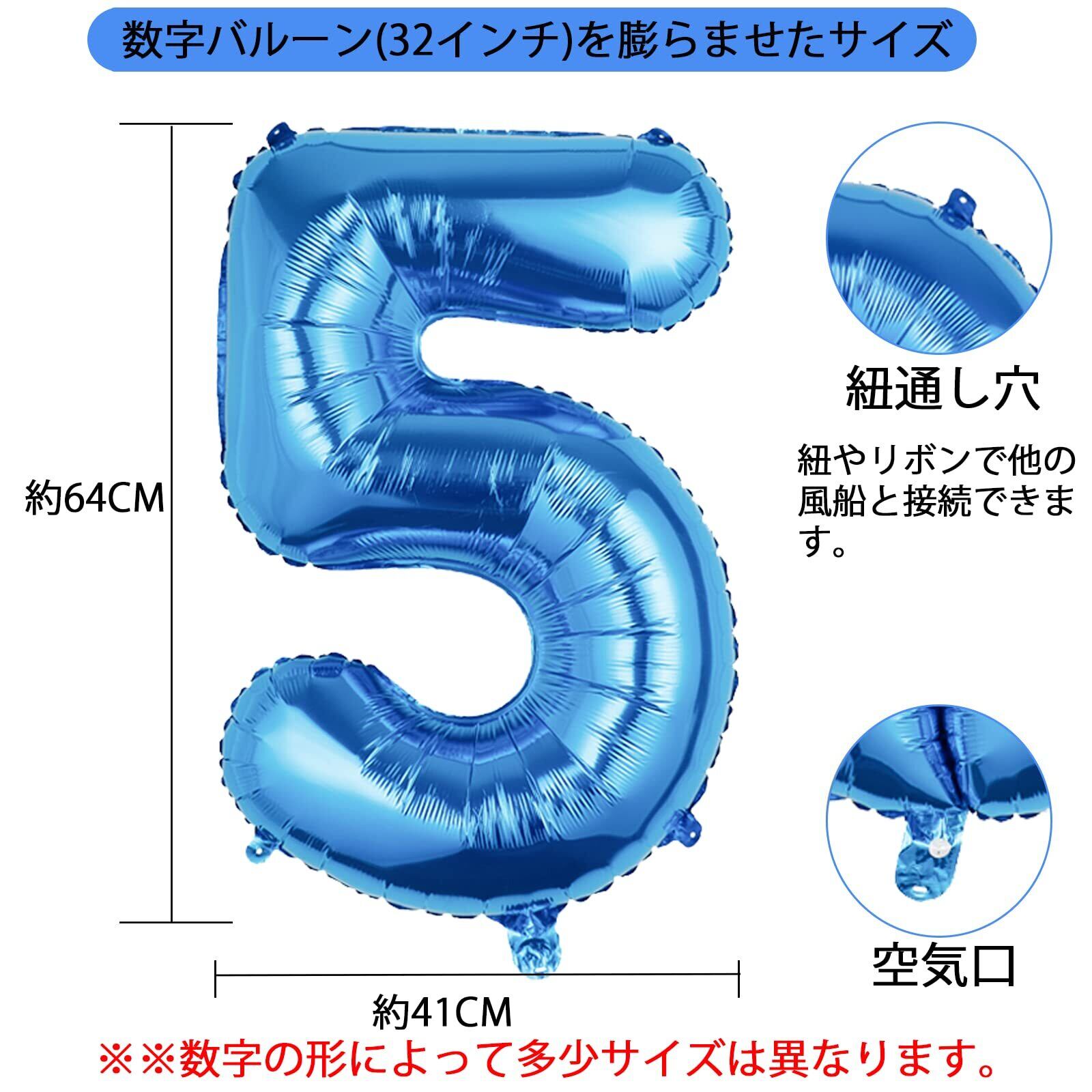 内容物:アルミ風船(ブルー数字5、32インチ)