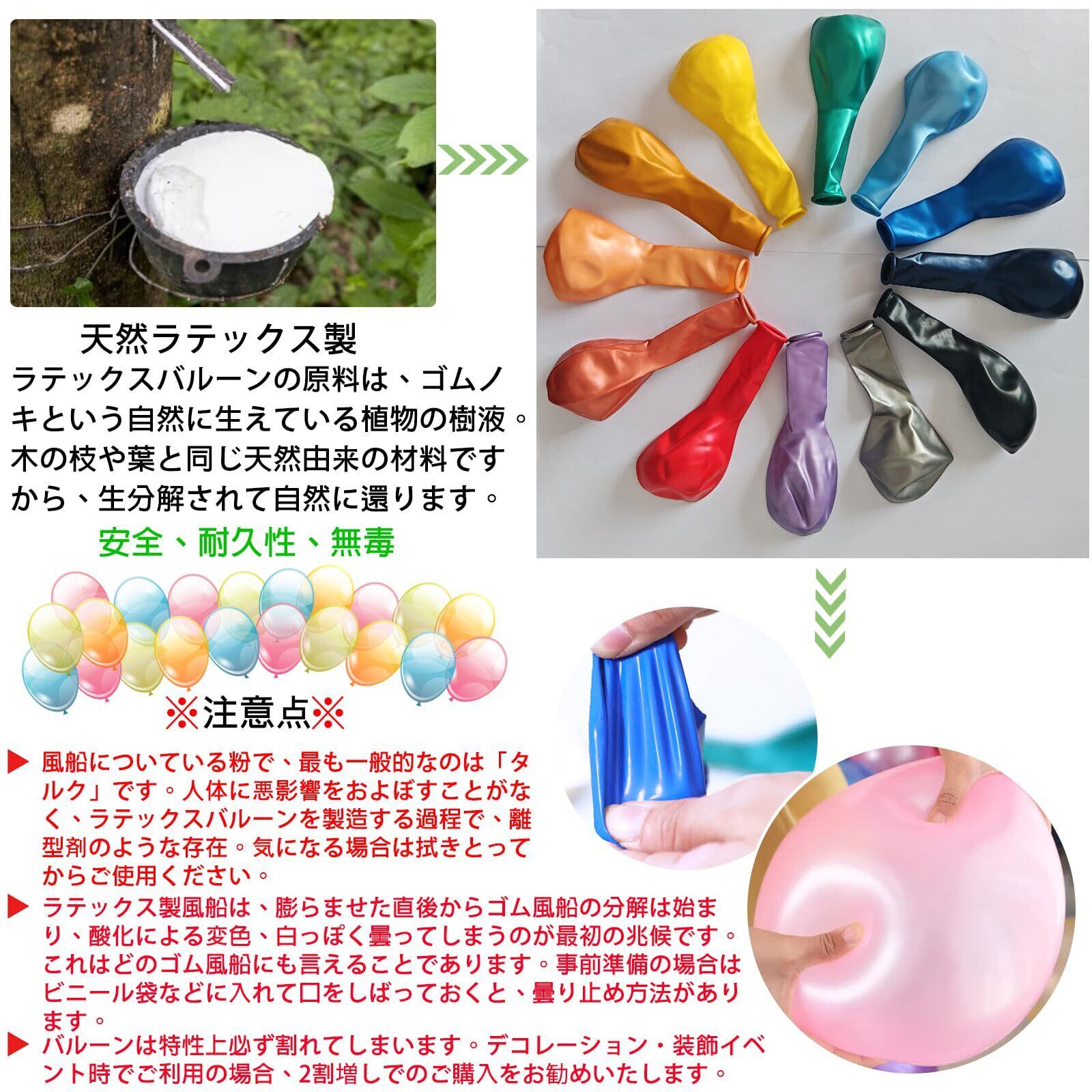 【高品質の素材】風船は良質のラテックス製で、安全、耐久性、無毒で、子供のそばで安全に使用することができます。風船を90%まで充填することをお勧めします。(ご注意:風船の表面にはタルクが入っているのは、風船が汚れているのではなく、くっつかないようにするたねです。タルクは無機粉末で、科学的にも安定した物質。原材料は、人体には影響はないベビーパウダーと同じものとなります。)