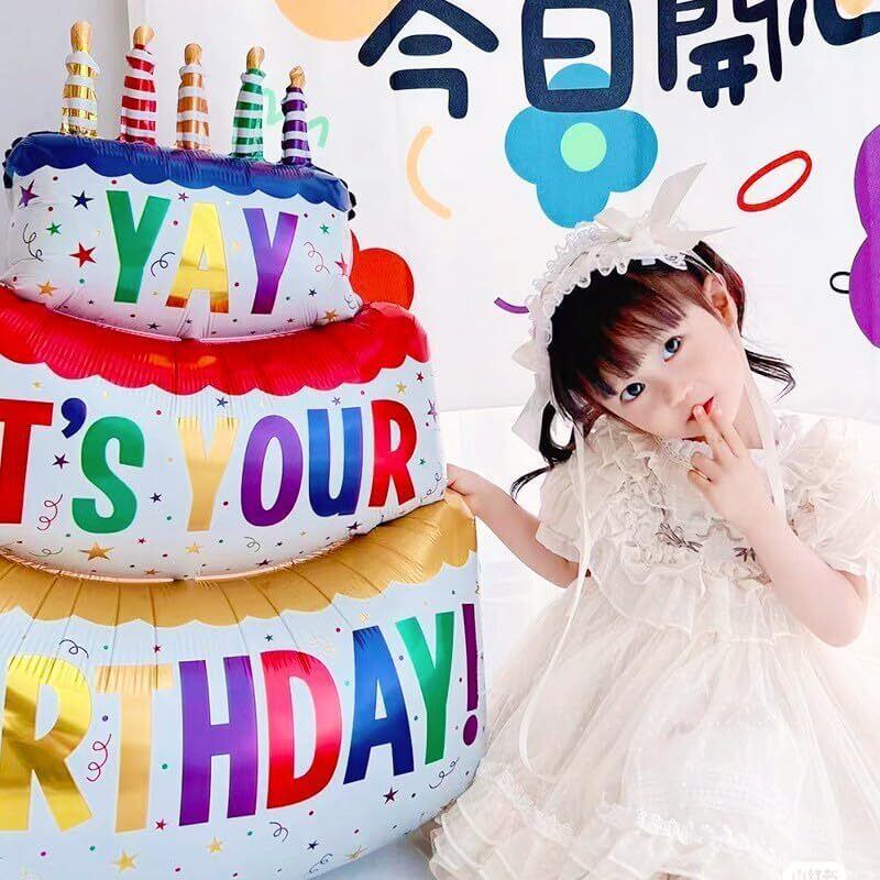 GOODCHI 特大サイズ!誕生日バルーン アルミ パーティーグッズ ケーキ フォトフレーム 飾り付け 男の子 女の子 かわいい 大きめ プレゼント おしゃれ 写真撮影 (01)
