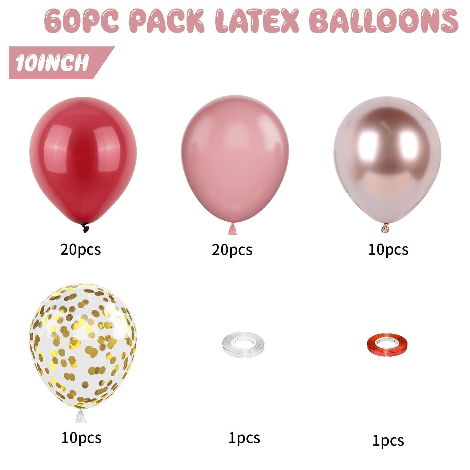 バルーン 風船 60個 レッド ピンク ゴールド 10インチ ゴム風船 豪華セット 誕生日 飾り付け ラテックス風船 紙吹雪風船 メタリック風船 バースデーパーティー 結婚式 記念日 イベント バルーンブーケ お祝い 飾り デコレーション 赤 金