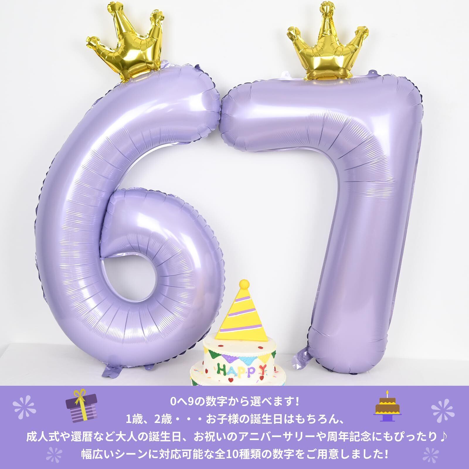 Lausatek バルーン 数字 風船 誕生日 40インチ 大きい ナンバー6 王冠付き クラウン バースデー 飾り付け パーティー 記念日 結婚式 男の子 女の子 約100cm 紫 ラベンダー