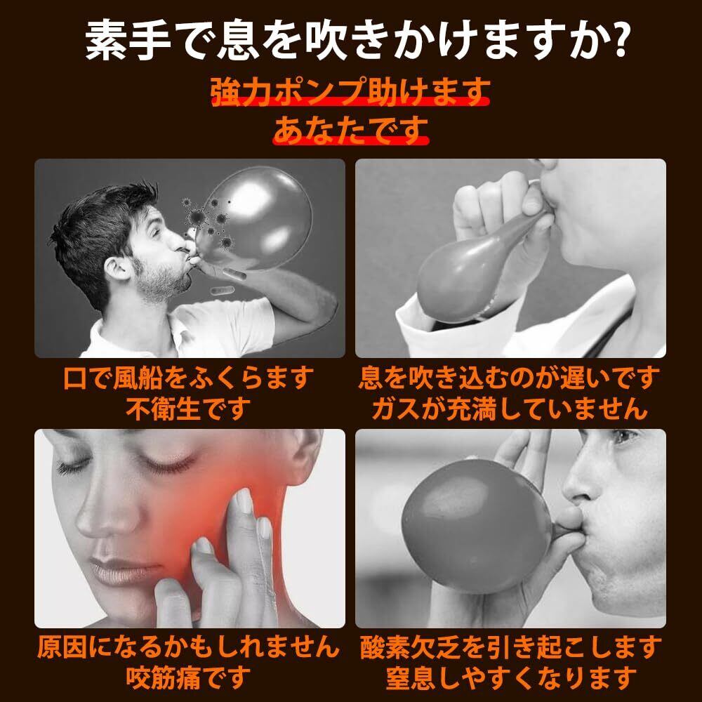 人間工学に基づいたデザイン:特殊なノズルが風船を固定します 8つの空気穴で最大風量 コンパクトで軽量 操作しやすいハンドル 子供から大人まで使用できます。