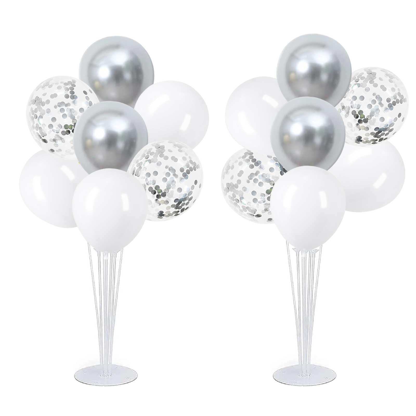 卓上式 バルーンスタンド シルバーホワイト 風船 セット バルーンスティック 風船 スタンド 2台 風船 14pcs セット バルーン ホルダー 誕生日 結婚式 パーティー 飾り付け 開店祝い 周年祝い 生誕祭 発表会