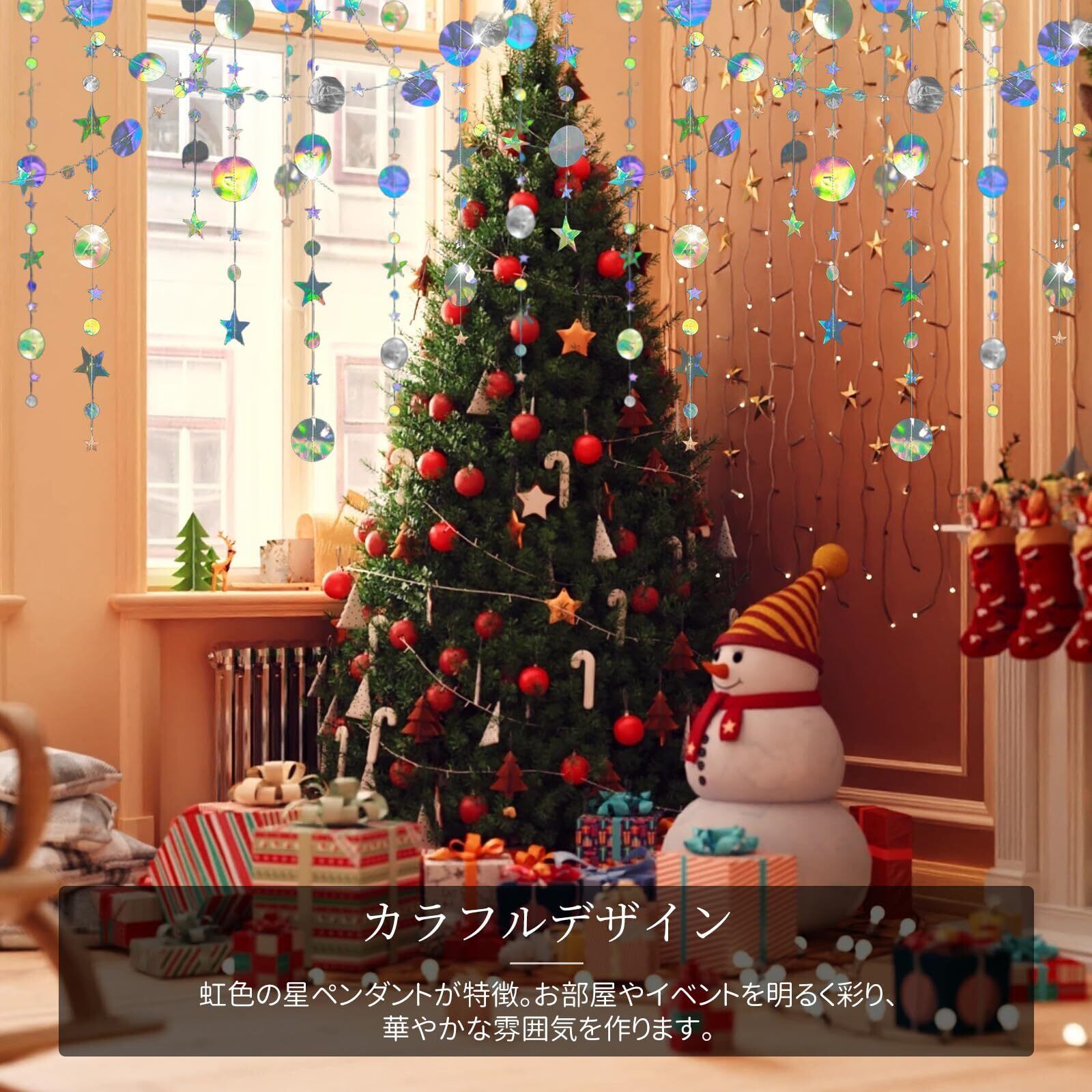 【豊富なデザインのセット内容】4本入のガーランドには、星形と丸形の飾りが含まれており、好みやテーマに合わせて自由に組み合わせることができます。これにより、各シーンでの飾り付けが一層楽しく、クリエイティブな空間づくりが可能です。