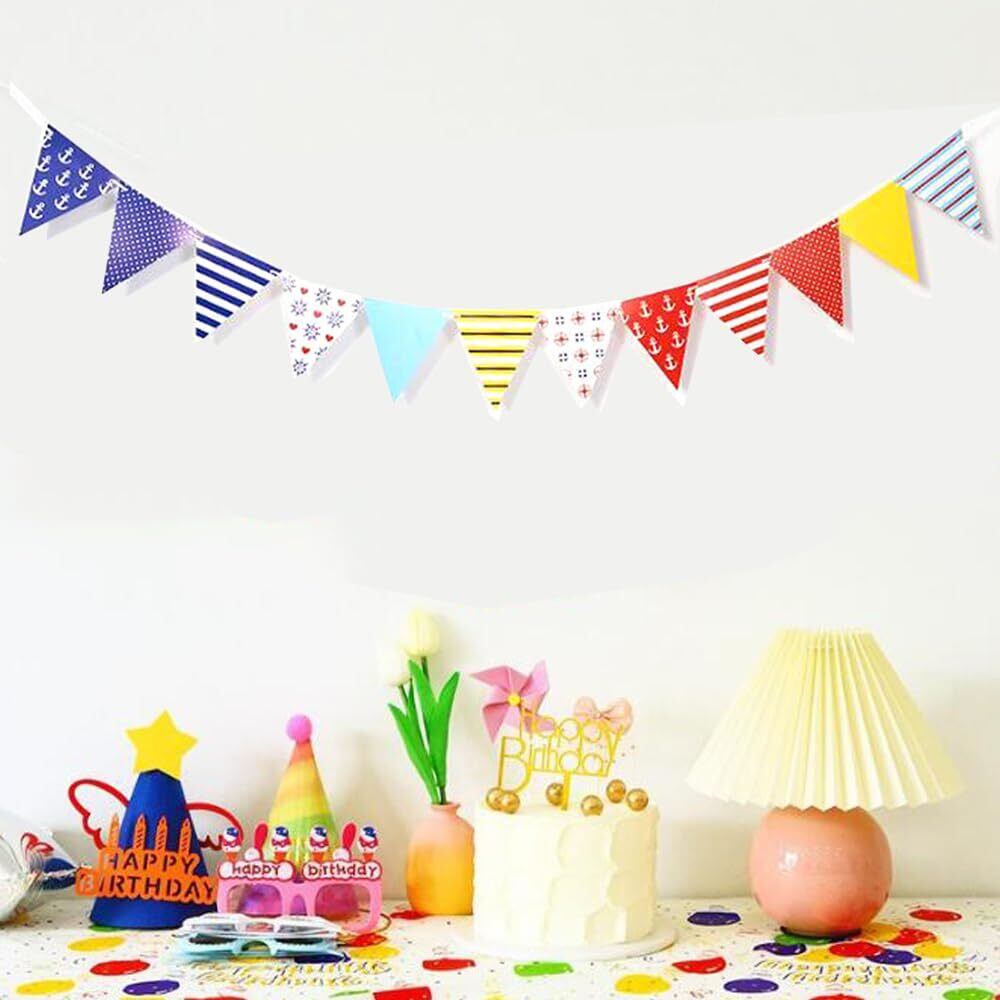 三角旗 カラフルフラッグ おしゃれ 人気 可愛い パーティー飾り 誕生日 結婚式 部屋飾り 壁飾り アウトドア 文化祭 運動会 三角の旗 5本セット 約5m長