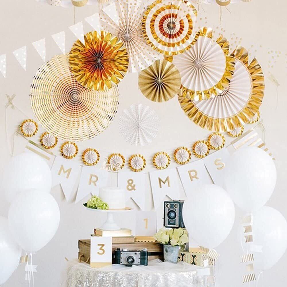 ペーパーファン 飾り付け 6枚セット お花紙 扇フラワー ペーパーファン ペーパー デコレーション誕生日 飾り付け ペーパーファン こどもの日 お正月 結婚式 クリスマス 卒業式 飾り付け 祭り イベント モール パーティー 飾り付け 写真背景 (ゴールド)