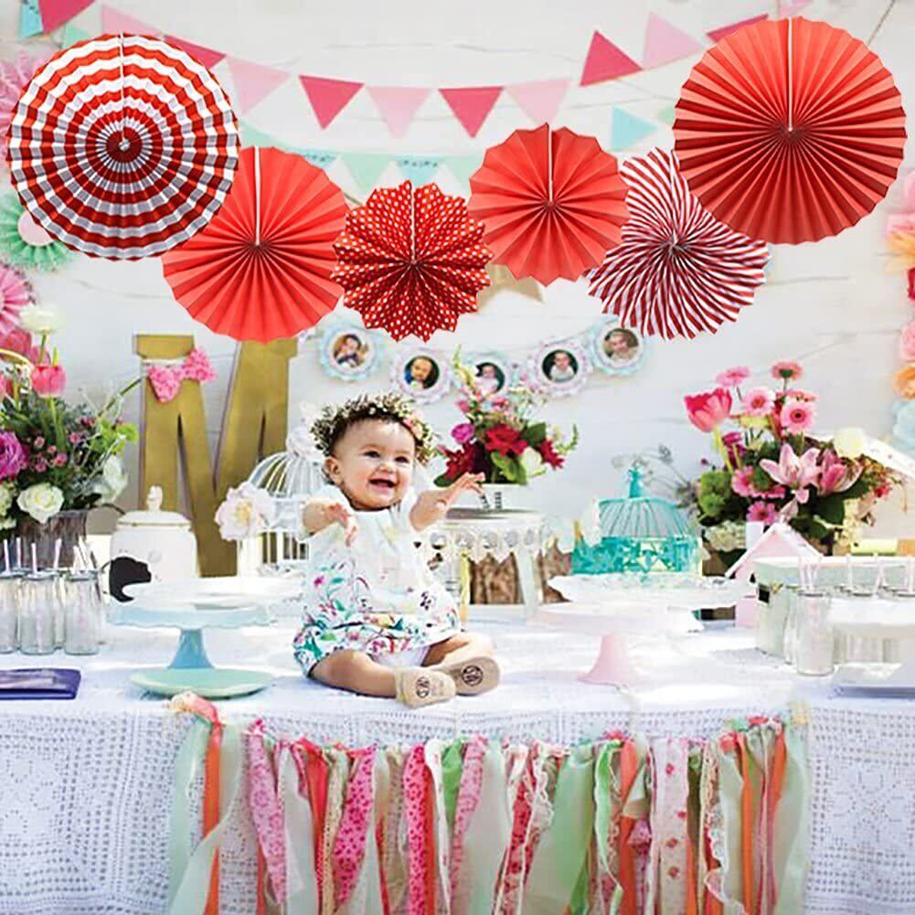 ペーパーファン 飾り付け6枚セット お花紙 扇フラワー ペーパーファン ペーパー デコレーション誕生日 飾り付け ペーパーファン 結婚式 クリスマス ハロウィン 卒業式 飾り付け 祭り イベント モール パーティーデコレーション パーティー 飾り付け 写真背景 (赤い系)