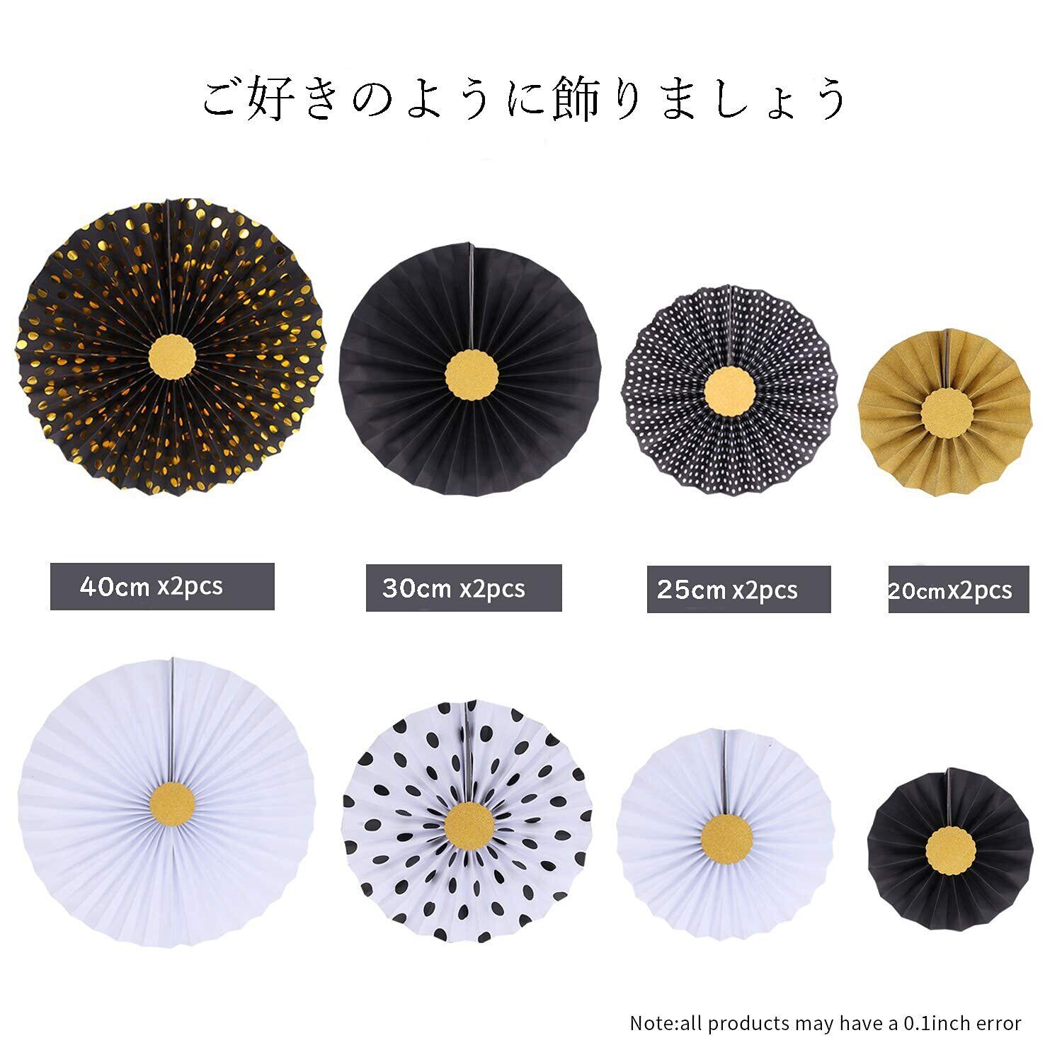 ペーパーファン 8個セット 結婚式 ウェディング 二次会 誕生日 バースデー パーティーファン ハロウィン クリスマス お祝い 飾り 装飾 デコレーション (黒白セット)