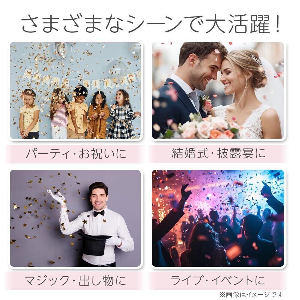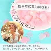 とても軽量な薄紙を使用しているため、桜の花びらのように空中を美しく舞い降ります。約10~14人で使える分量:1人あたり100~150枚が目安。さらに豪華な演出には1人300枚程度の使用がおすすめです。