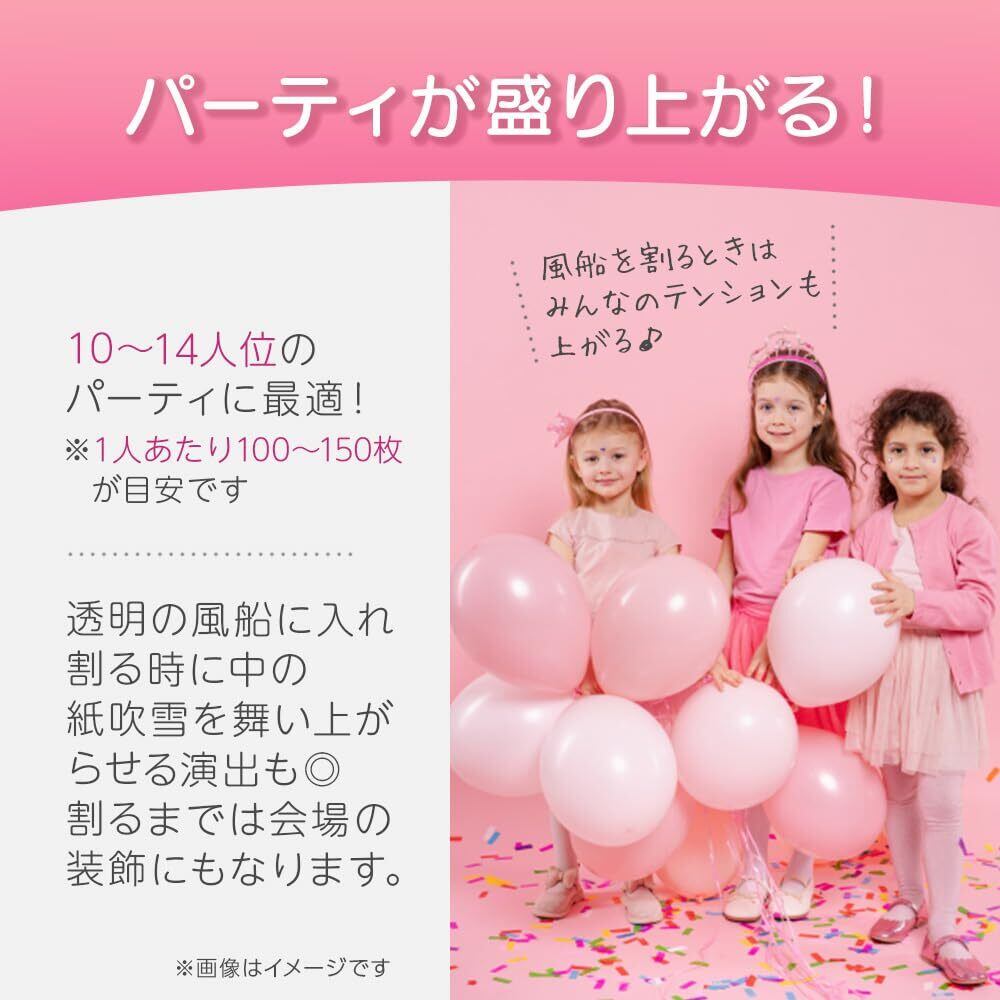 ウェディングやパーティーのコンフェッティ(紙吹雪)シャワーやウェルカムスペースにもおすすめです。透明風船に入れて割ると中の紙吹雪が舞い上がり、おしゃれな飾りと演出を一度に楽しめます。写真映えも抜群で、インパクトある演出ができます。