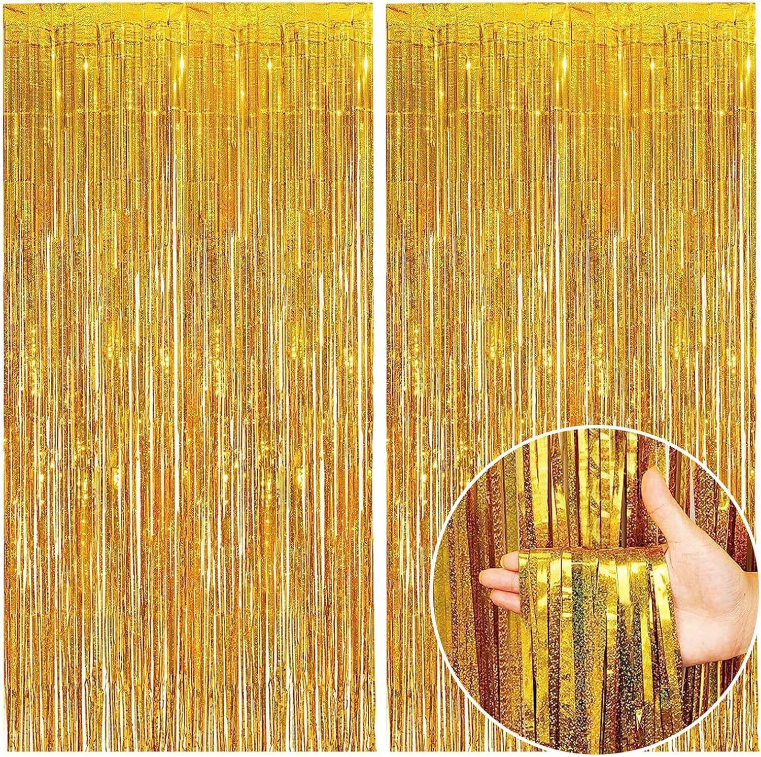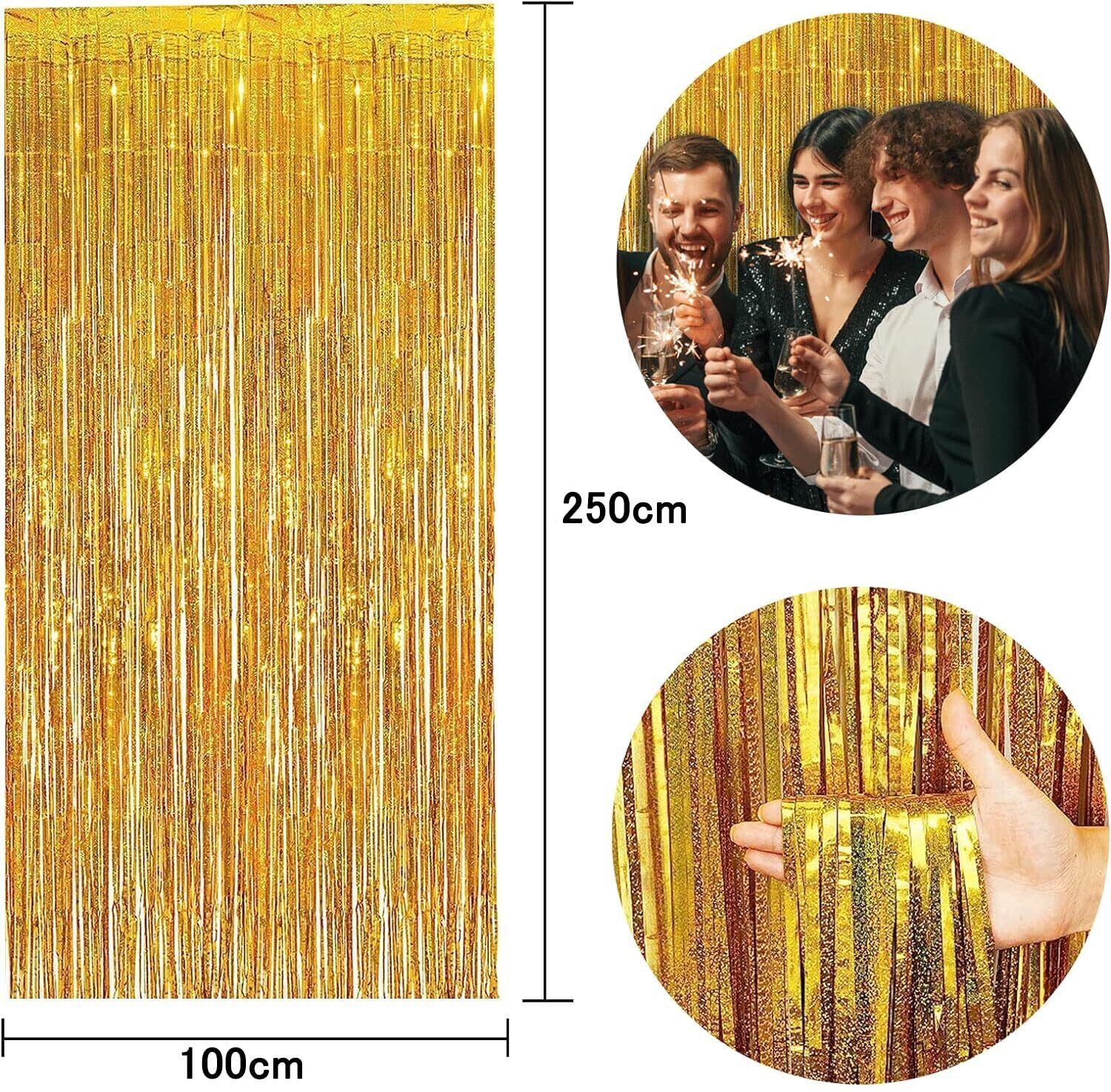 2個セット タッセルカーテン キラキラ 背景 明るい光沢 誕生日 飾り付け パーティー 結婚式 舞台 空間デコレーション バックドロップ ホイルカーテン フォトブース カラフル party decoration 100cm*250cm (ゴールド)