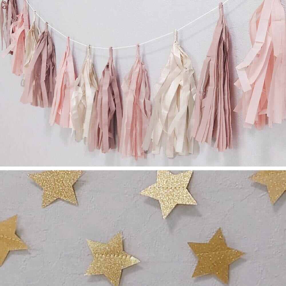 【セット内容】ペーパーフラワー…6個、レターバナー…1点、スターガーランド…1点、タッセルガーランド…1点、付属品…ひも、ひも通し