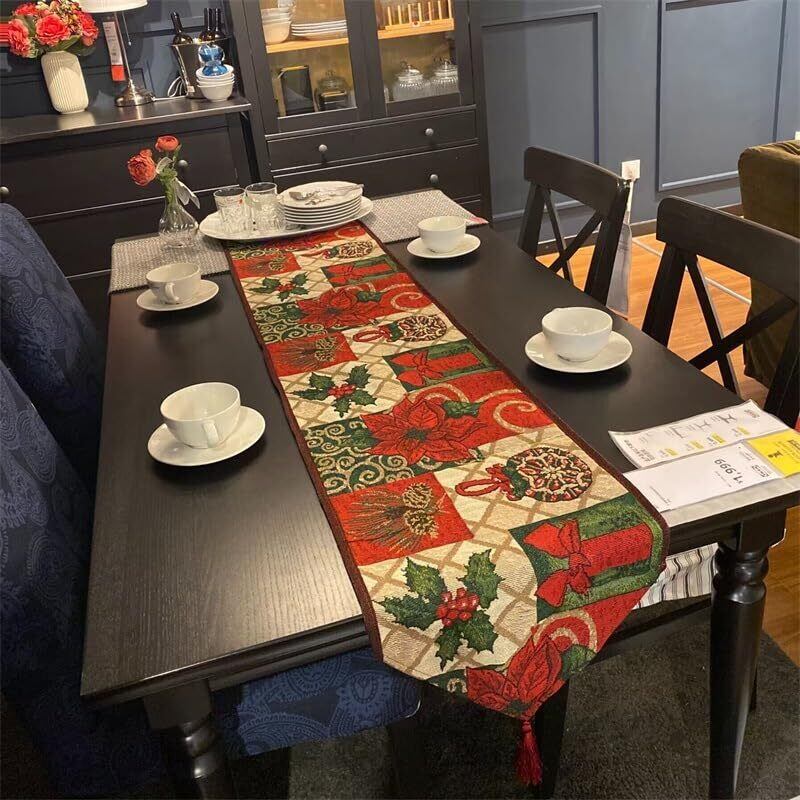 【ご注意】本商品は装飾用アイテムですので、火気の近くでの使用は避けてください。「FINGOOO」のテーブルランナーで、心に残る素敵なクリスマスをお楽しみください!