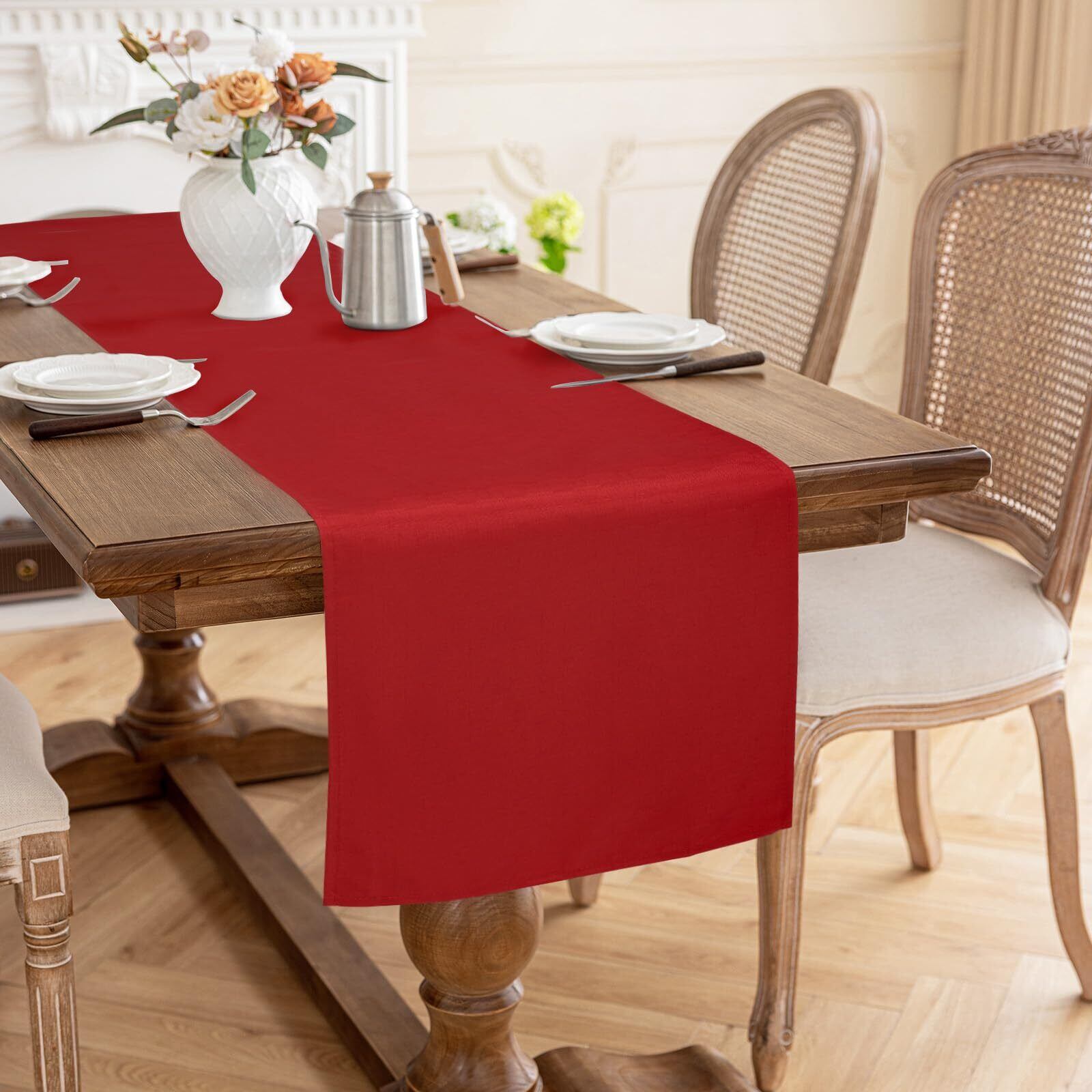 AooHome テーブルランナー グレー 30x180cm リネン風デザイン 無地 和風 洋風 北欧 クロス テーブルクロス テーブルセンター ブリッジランナー 洗えるポリエステル製・撥水|防傷加工 レッド