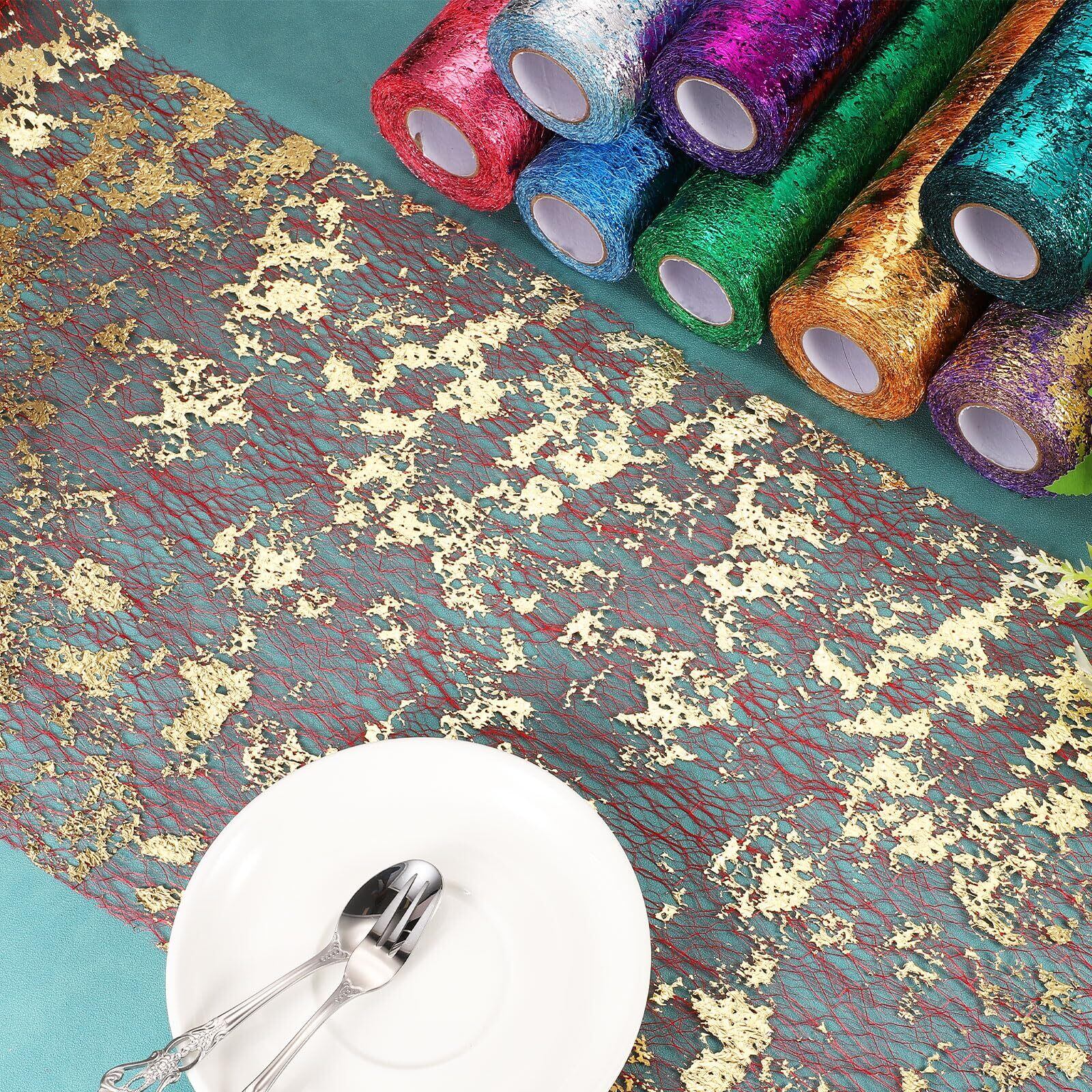 [サイズ&パッケージ]: カラー:オレンジ金。サイズ: 28cm x 5m(幅 x 長さ)。パッケージ内容:テーブルランナー1巻。