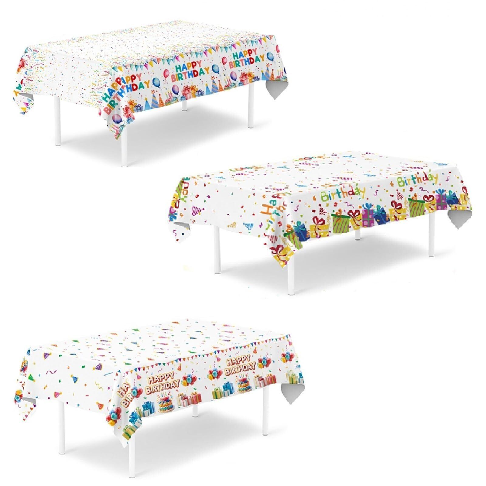 【パーティーを華やかに彩るカラフルなテーブルクロス!】この「3枚入り 使い捨てテーブルクロス」は、誕生日や特別なイベントに最適なアイテムです。約130×220cmのサイズは、多くのテーブルにフィットし、瞬時に明るい雰囲気を演出します!