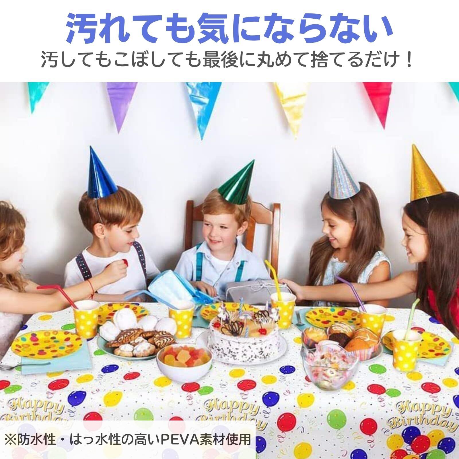 【使い捨てだからストレスフリー】パーティーは楽しみだけど準備や片付けのことを考えると気が重い。パーティー中もフードやドリンクをこぼされないかちょっと心配。でも大丈夫!防水性・撥水性に優れているPEVA素材だから汚れてもサッと拭くだけ。最後は捨てればオールオッケーです。