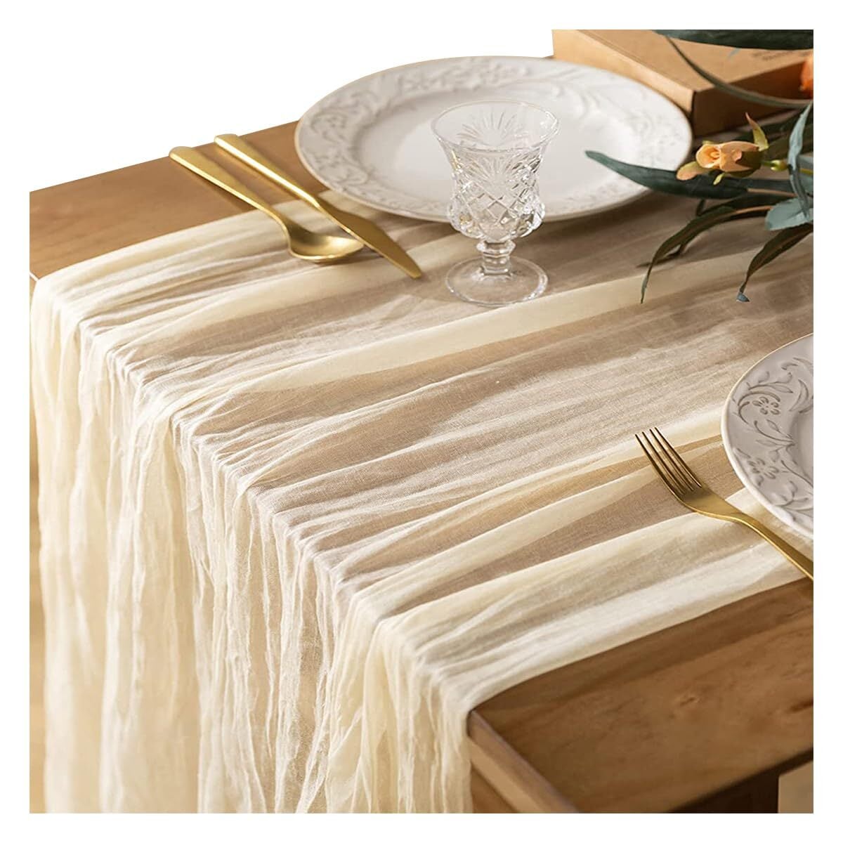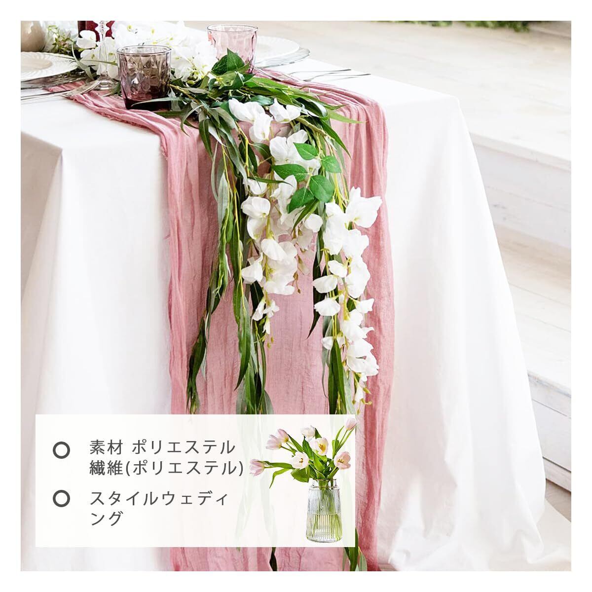 プリーツ技法:このチーズクロスのテーブルランナーは、独特のプリーツスカート技法と糸がほぐれにくい張りのあるエッジが特徴で、テーブル、椅子、ギフト、ブーケなどの装飾に最適です。