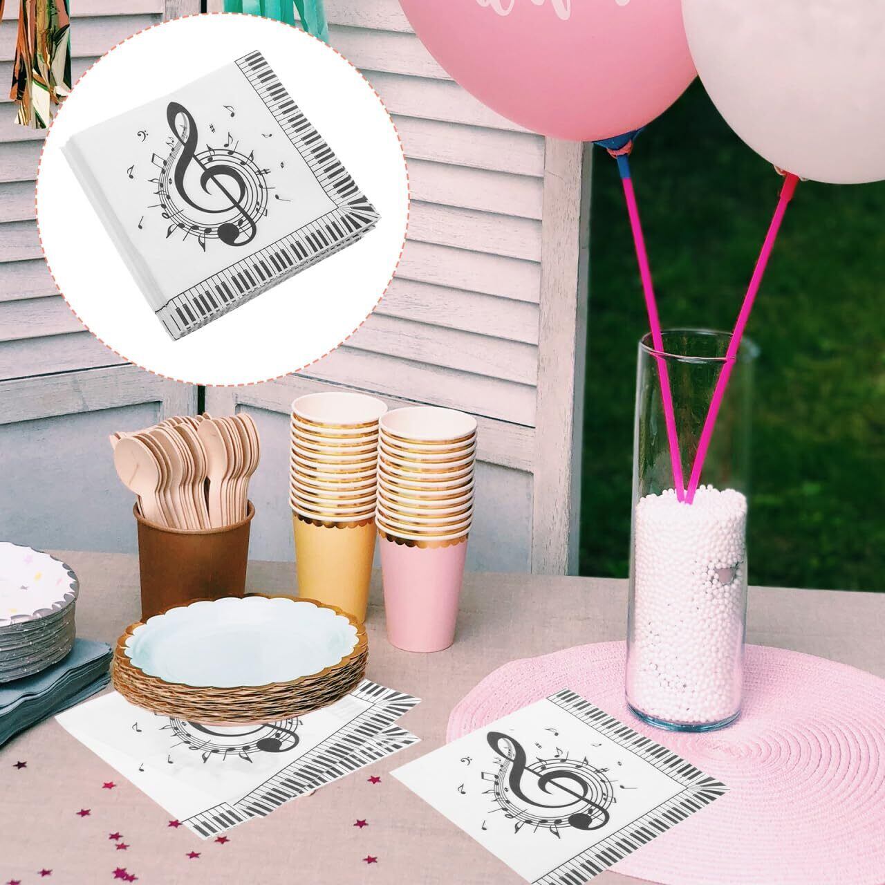テーマ性のあるデザイン:音符がデザインされたパーティーナプキンは、音楽をテーマにしたイベントやパーティーに最適で、場の雰囲気を華やかに彩ります。