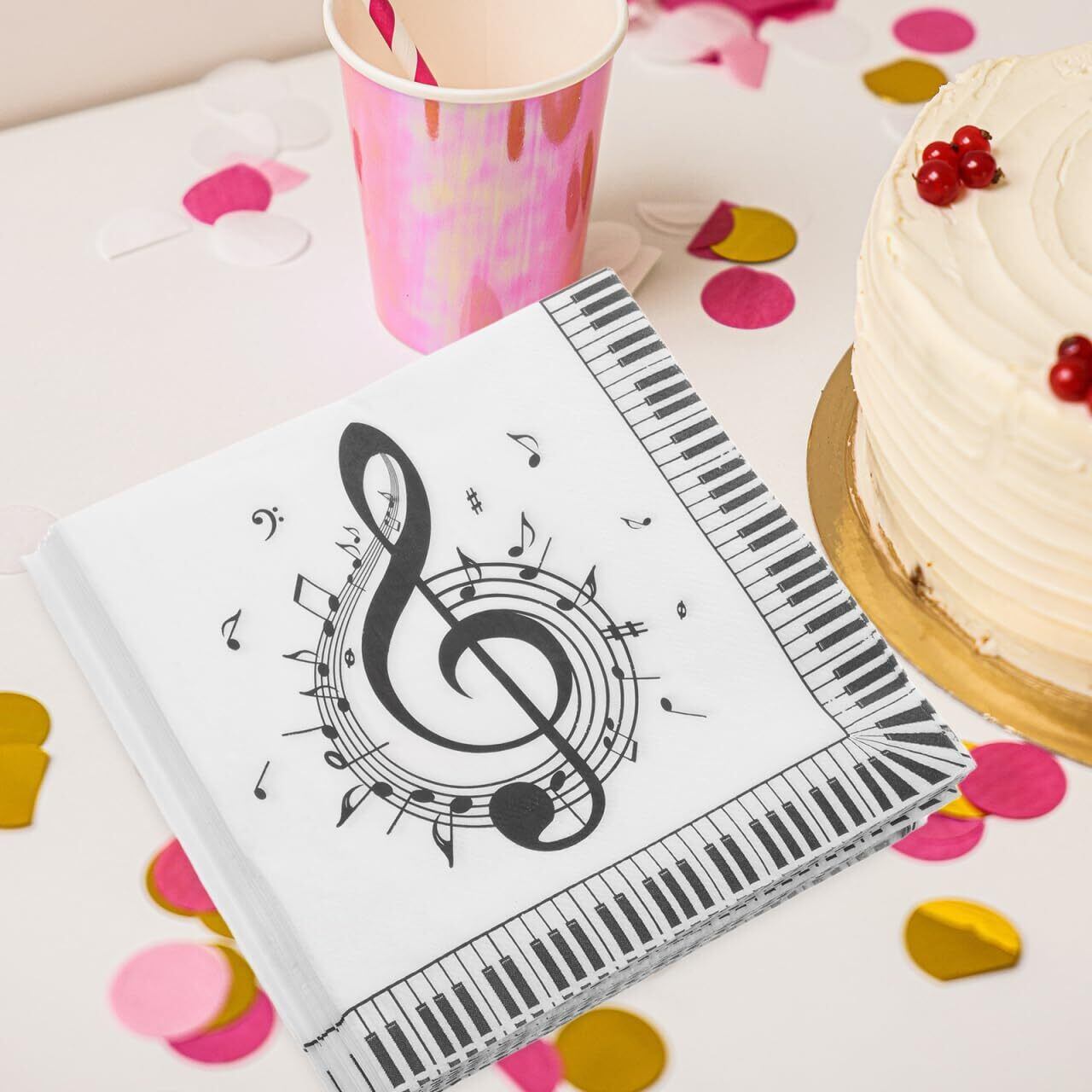 Healvian 音符ペーパーナプキン 20枚セット 音楽テーマパーティー用 使い捨てディナーナプキン 家庭用テーブル装飾 16.5×16.5Cm