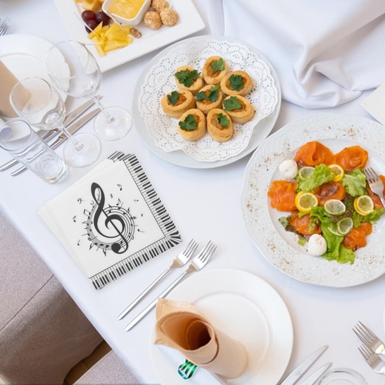 【多用途に使えるデザイン!】この音符モチーフのペーパーナプキンは、音楽をテーマにしたパーティーや食事、特別なイベント、さらには毎日のホームディナーにも幅広く活躍します。さまざまなシーンであなたの食卓に華やかさをプラスします。