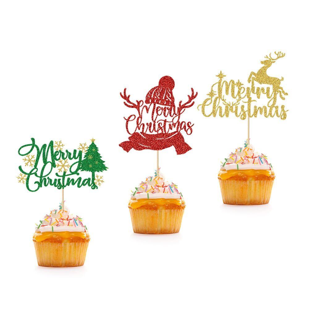 クリスマス ケーキトッパー ケーキピック 36本 カップケーキトッパー かわいい サンタ 雪の結晶 クリスマスツリー ケーキデコレーション クリスマスパーティー (メリークリスマス)