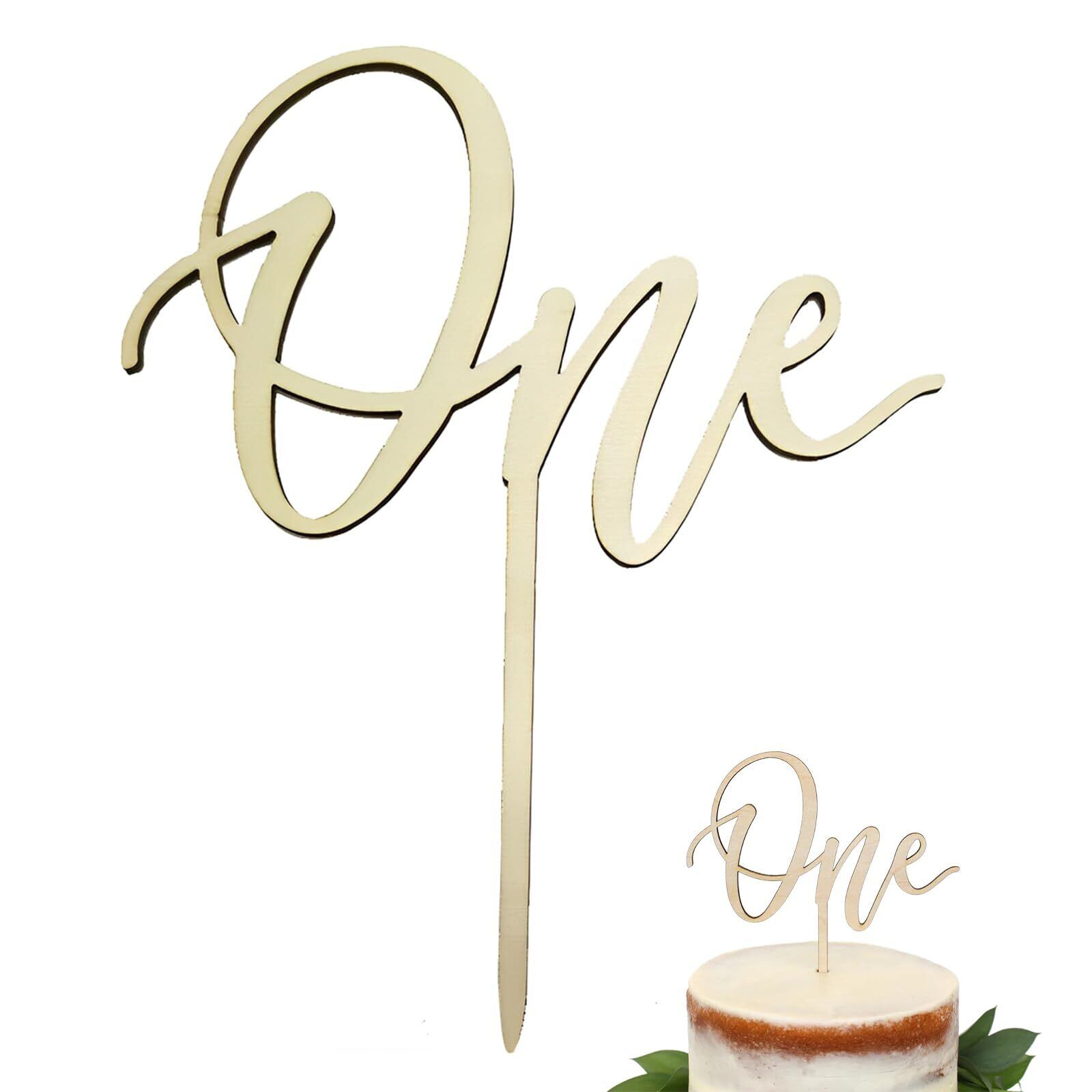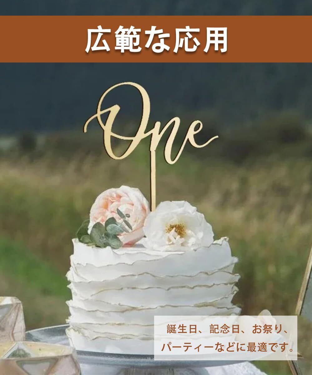 ケーキトッパー 木製 ケーキ飾り ピック 誕生日 スマッシュケーキ 誕生日パーテ デコレーション バースデー 記念日 お祝い 飾り付け お菓子 果物 お弁当用 1歳 One