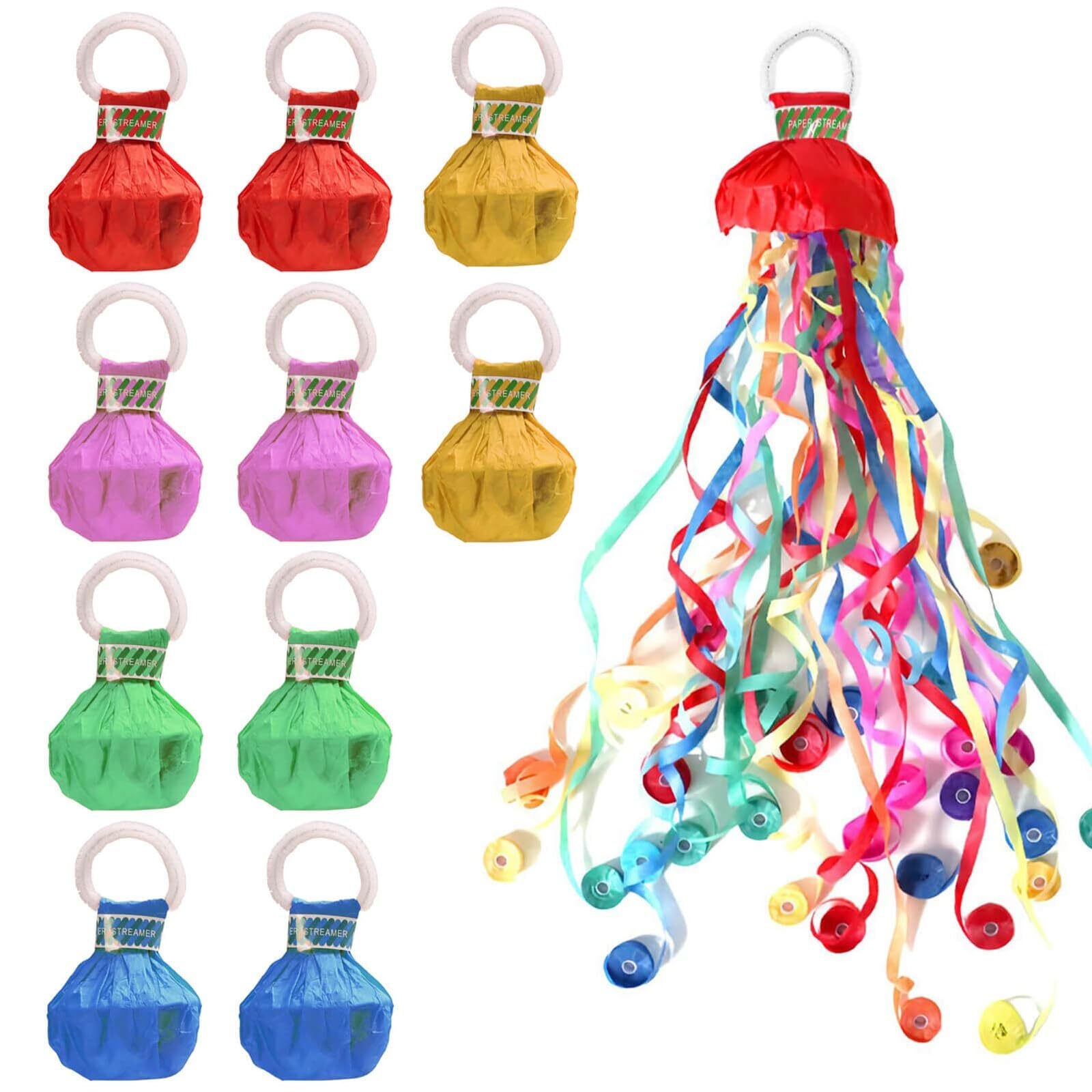 散らからないクラッカー 10個入り 5色 色はランダム カラフル 紙吹雪 手投げる 紙テープ 手投げストリーマー 雰囲気作り 小道具 演出 卒業 記念日 玩具 優勝 勝利 お祝い 結婚式 引っ越し用 パーティー
