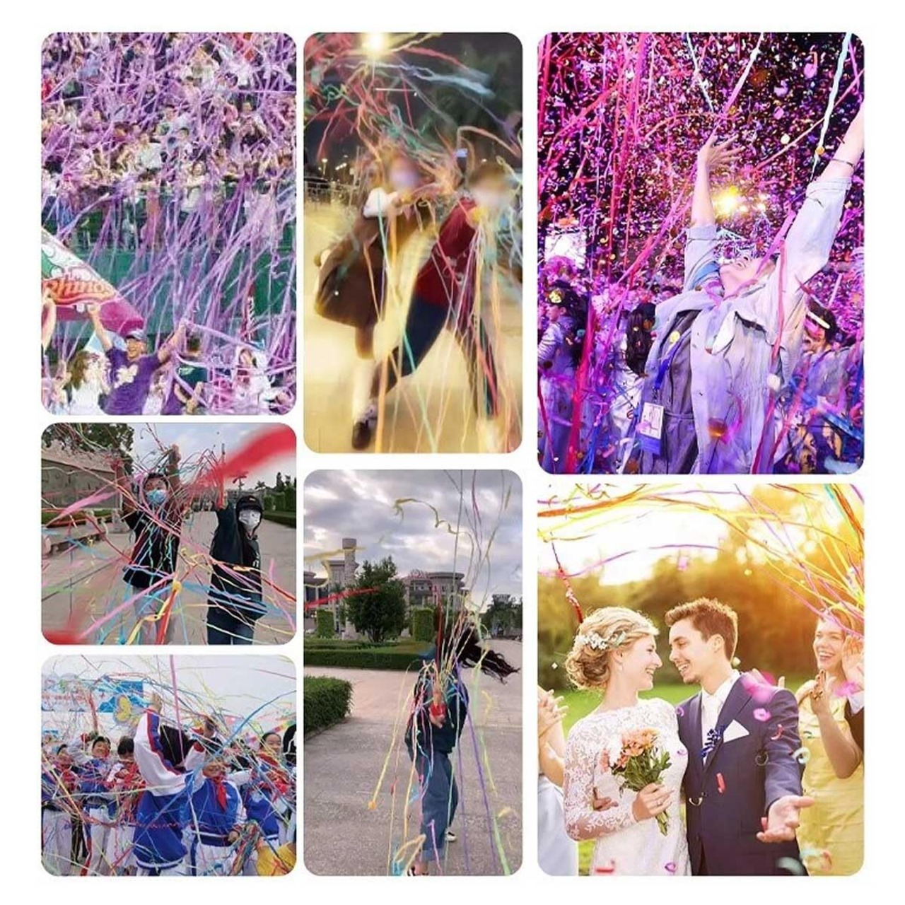【散らからないクラッカー 】:イベントやパーティーを盛り上げるカラフルなテープ!結婚式、卒業式、コンサート、スポーツ応援など、あらゆるイベントで場を盛り上げます。鮮やかなカラーが視覚的なインパクトを与え、写真映えも抜群!