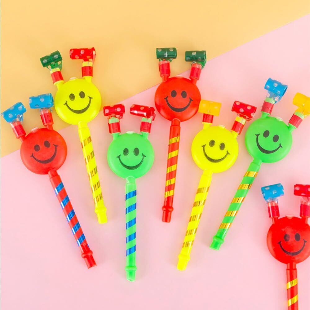 1️⃣ カラフルで楽しいデザイン – ランダムカラーで届く吹き戻し笛。パーティーを一瞬で明るく演出!