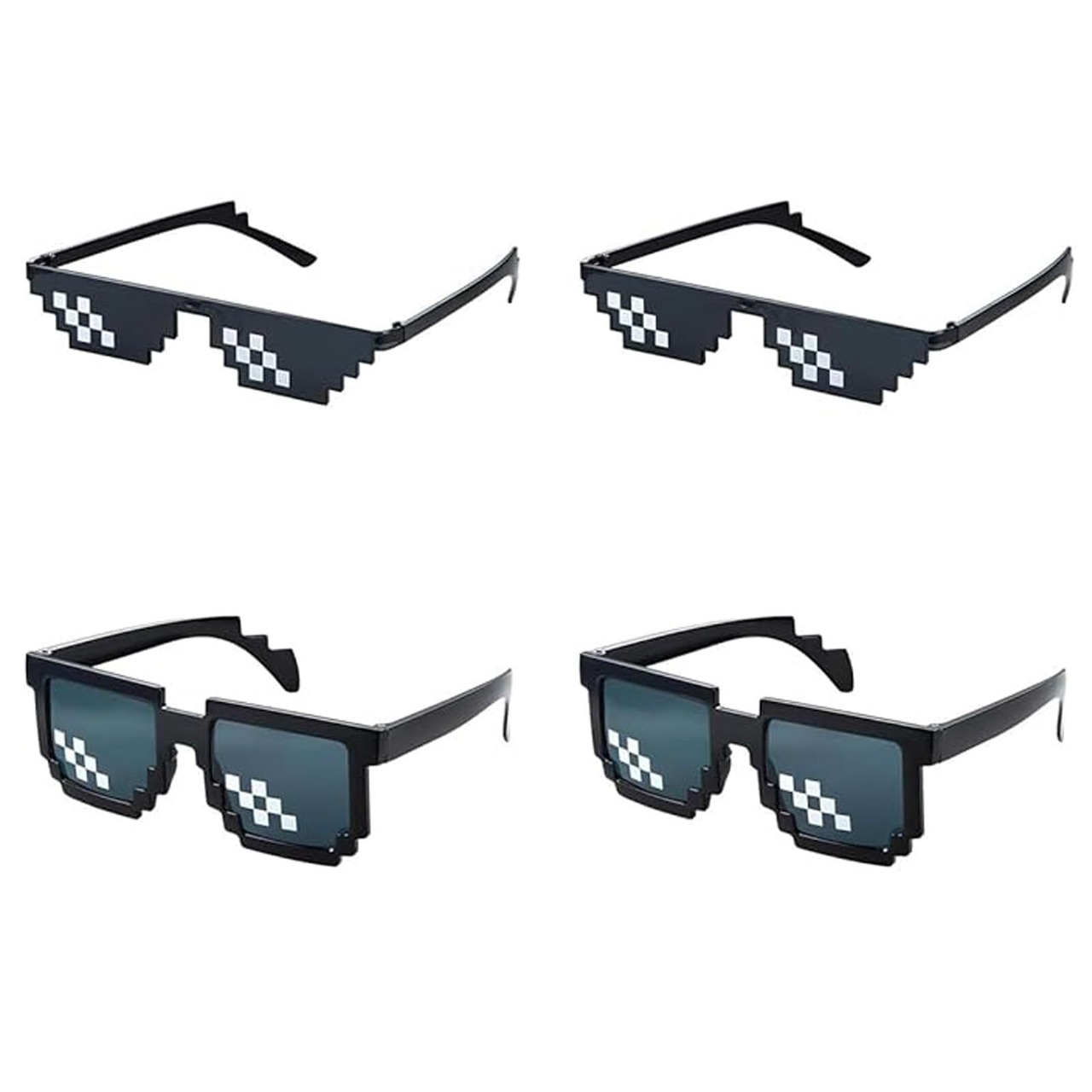 2. 商品詳細:4点セットには、ピクセル無框眼鏡2本と、ピクセルフレーム付き眼鏡2本が含まれています。ユニークでクールなデザインがあなたを注目の的にし、目立つこと間違いなし。