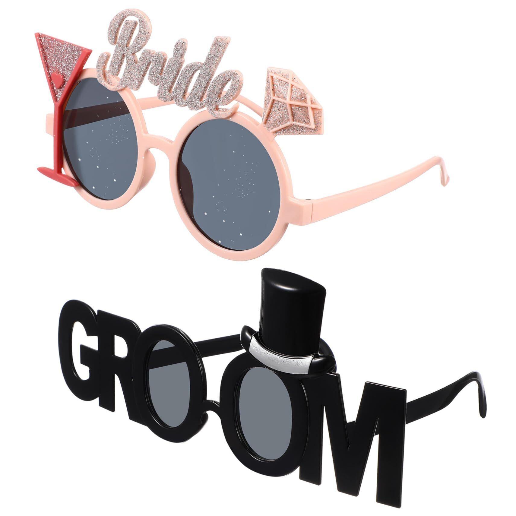 [Kichvoe] 2個 新郎 と 花嫁 サングラス バチェラー メガネ メガネ 写真 小道具 バチェロレッテ パーティー デコレーション ヘン パーティー 用品 ウェディング シャワー デコレーション