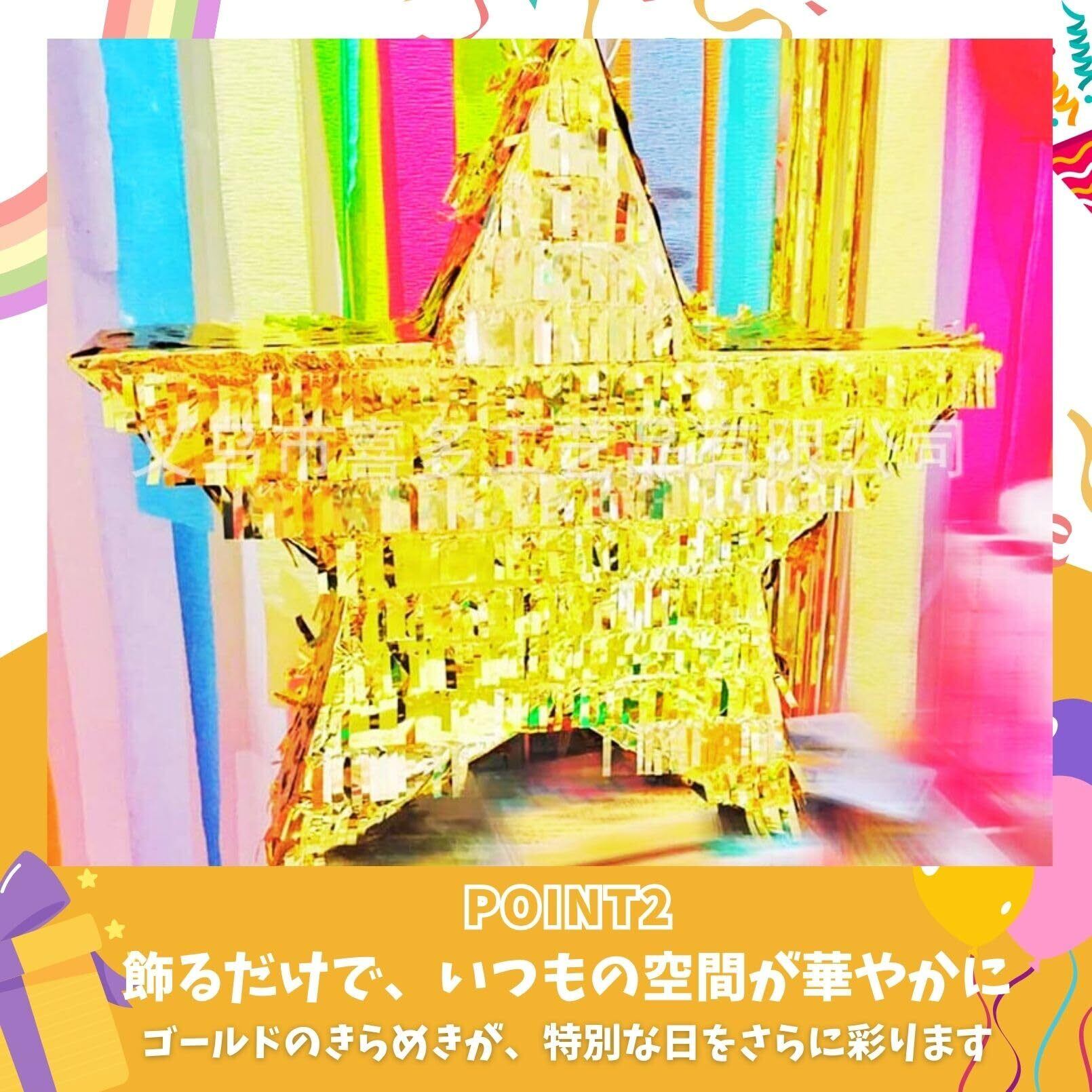 【パーティーを華やかに演出するピニャータ!】「IMPACTオンライン ピニャータ」は、誕生日や各種お祝いイベントを一層盛り上げるための必須アイテムです。美しいゴールドスターのデザインが、どんなパーティーシーンにも華やかさを加えて、参加者全員を魅了します。