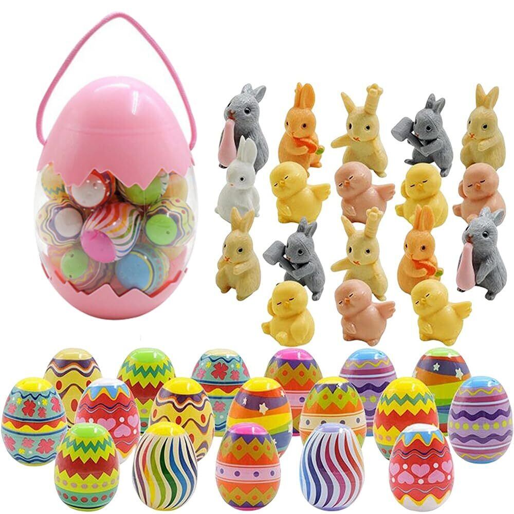 イースターエッグ 中におもちゃがいっぱい 子供用 カラフルなイースターおもちゃの卵 ひよこバニーアニマル付き イースターバスケットの詰め物 (style1)