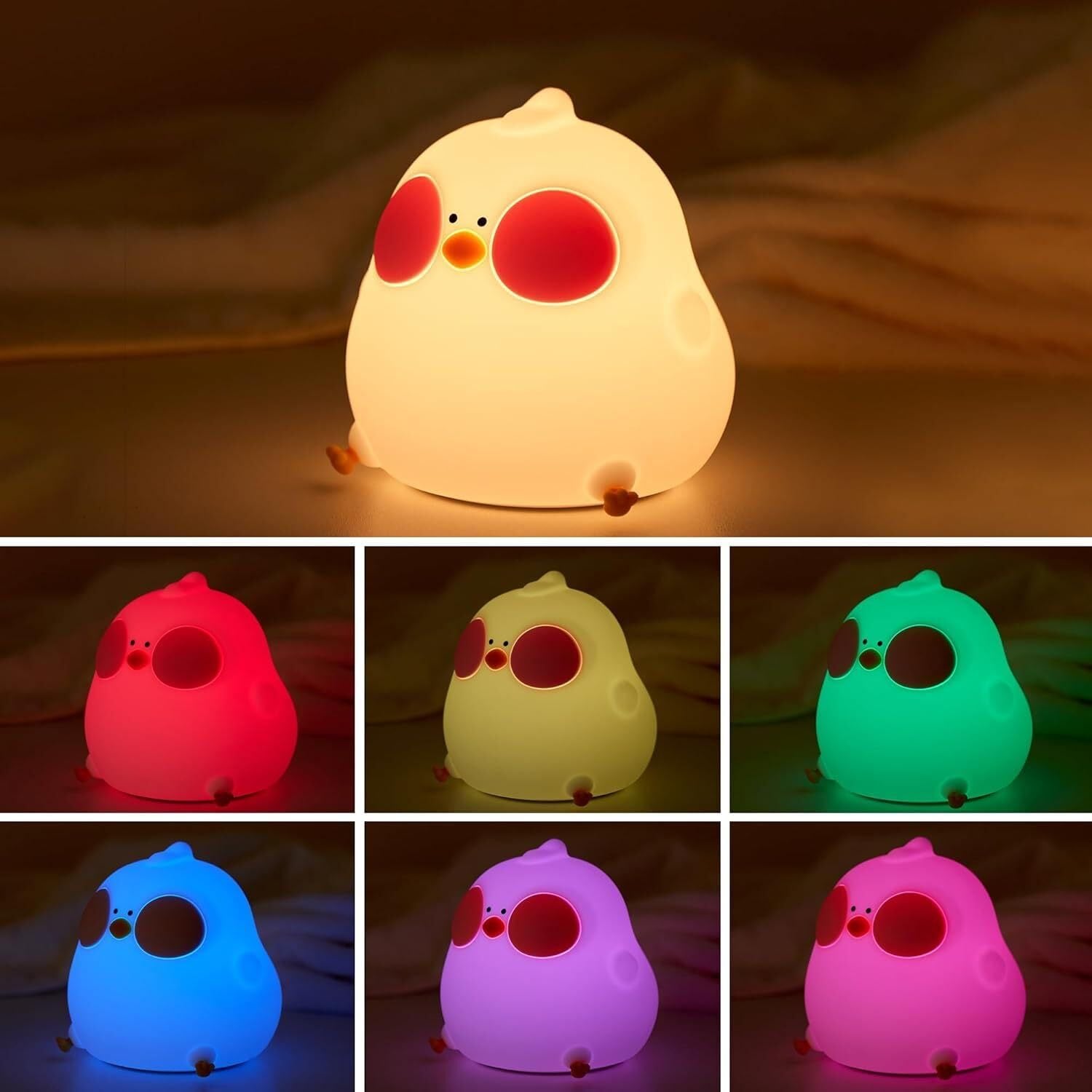 可愛いナイトライト タッチセンサー付きサイドライト LEDシリコン保育園ベビーナイトライト USB充電式ダックナイトライトベッドサイドランプ 3レベル調光可能な明るさ 子供のための柔らかな光 母乳育児室や寝室のデコレーションにも最適 (ナイトライト, ひよこ)