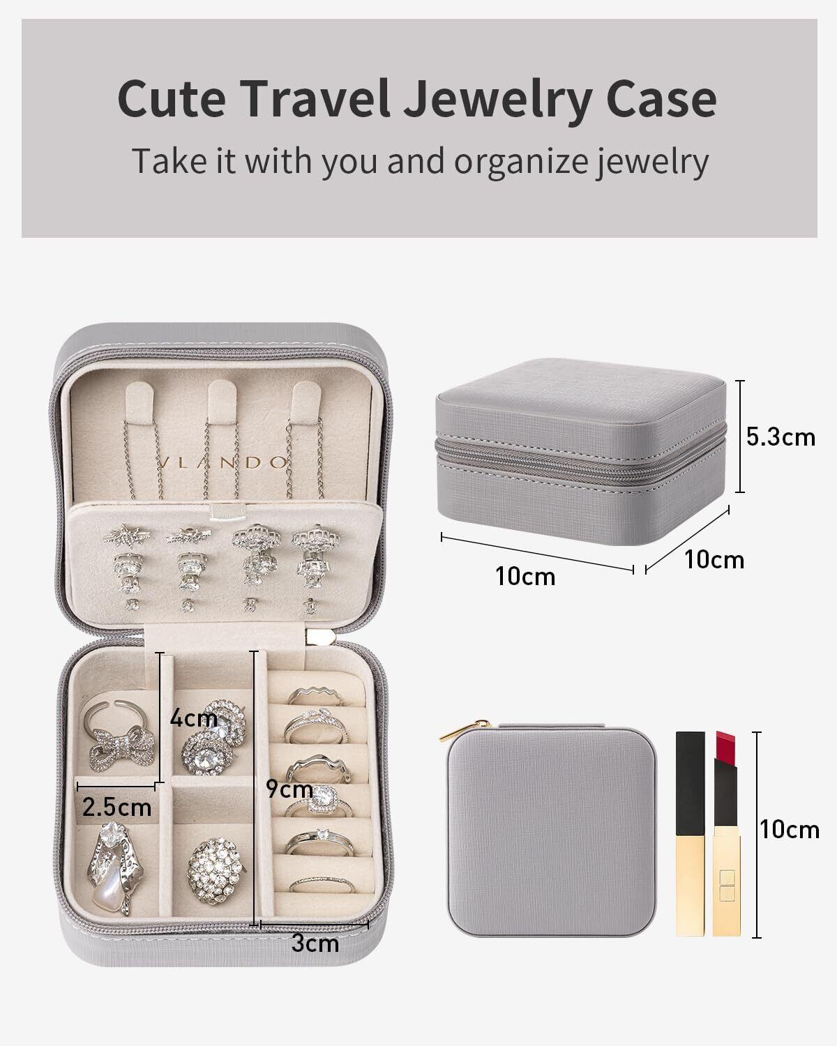 Vlando 正方形アクセサリーケース 持ち運び 小物入れ ジュエリーケース 持ち運び イヤリング 収納 誕生日プレゼント-グレー