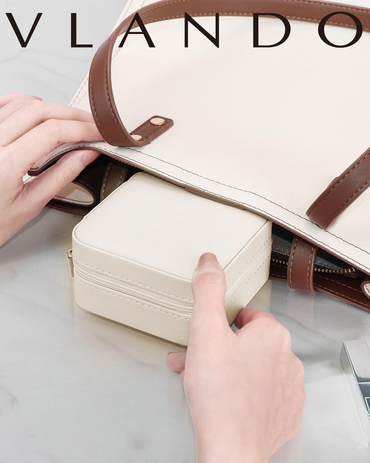 Vlando 誕生日プレゼント女性 ジュエリーボックス プレゼント 携帯用 鏡付き ジュエリーボックス トラベル 結婚祝い プレゼント 記念日 バレンタイン 退職 祝い 贈り物(ホワイト)