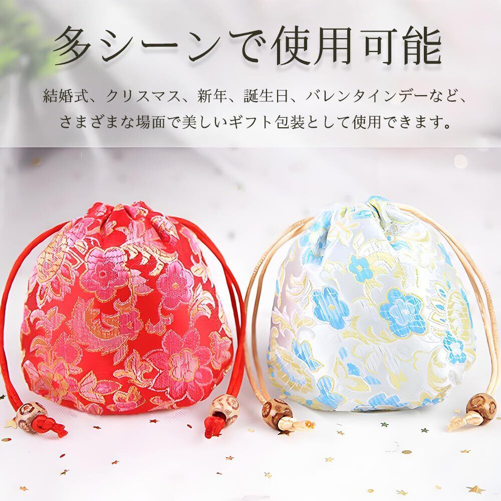 【商品仕様】サイズは約11×10cmのサテン製巾着袋で、6色のセットが含まれており、レトロな中国風のジャカード模様が施されています。お好きなようにコーディネートできます。