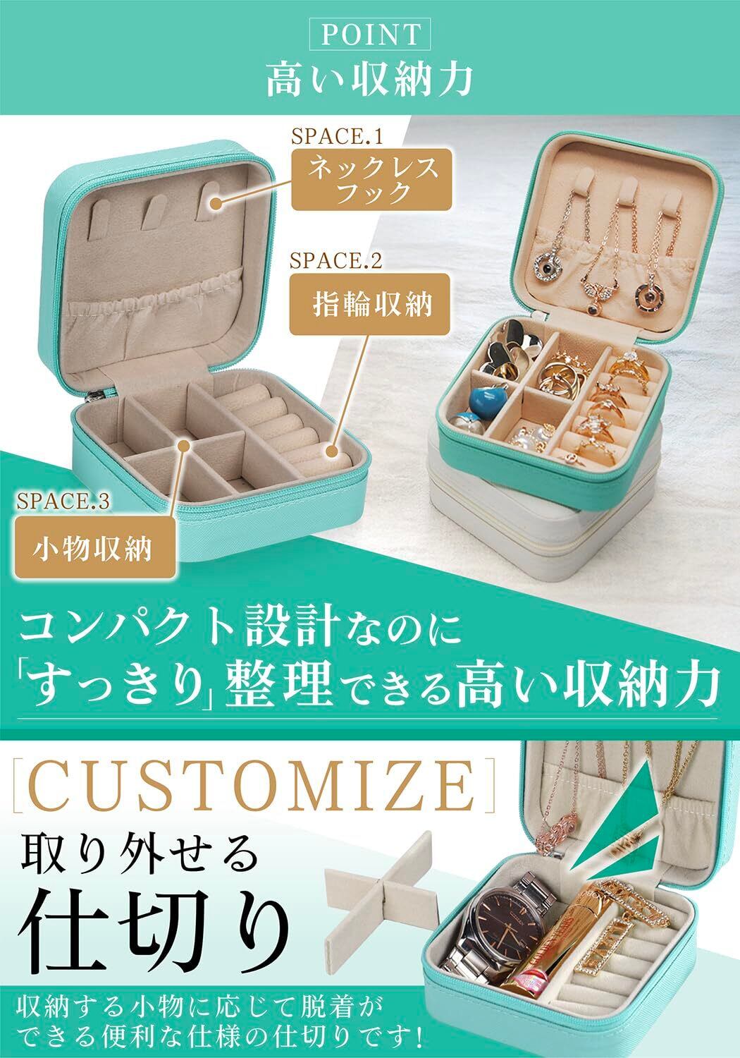 [Arena Leo] ジュエリーボックス アクセサリーケース 収納 ジュエリーケース 持ち運び 携帯用 (ミントグリーン)
