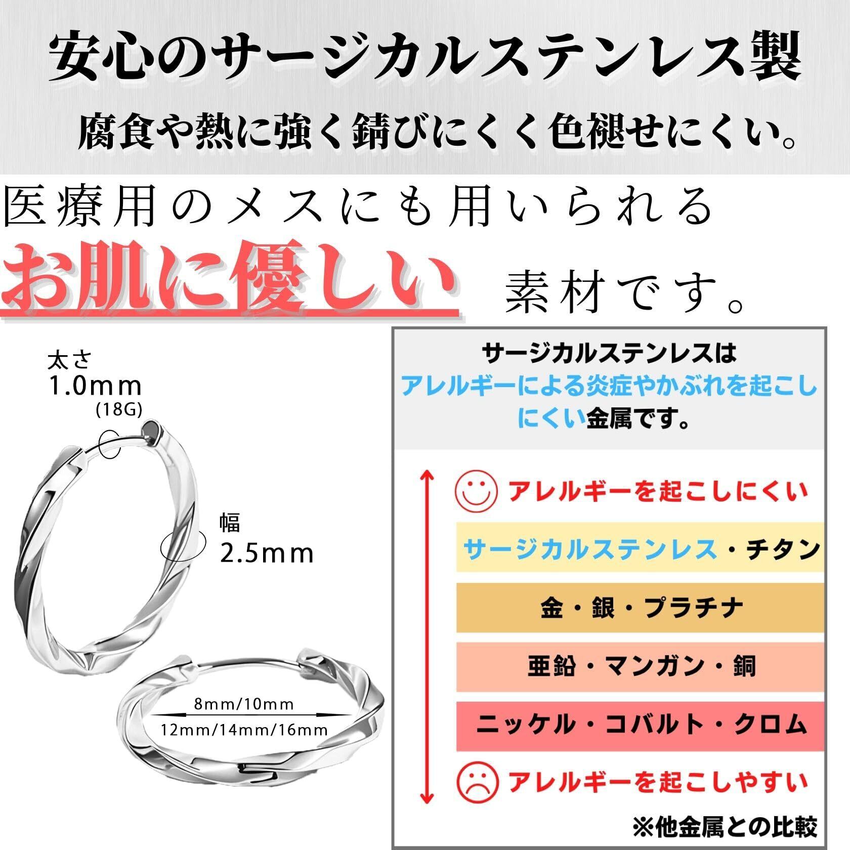 [swars] ピアス メンズ フープピアス リングピアス サージカルステンレス 金属アレルギー対応 2個セット
