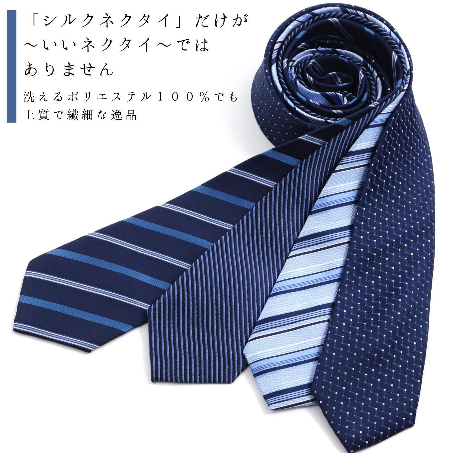 [RATOM] ネクタイピン ネクタイ セット【ネクタイ5本+ピン3本+ギフトボックス、洗濯OK】 (ブルー系)