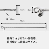 【細身のサイズ感】「手首周り」17cm前後「チェーン全長」19cm「幅」0.2cm「重量」2.0g / 細身であらゆるスタイルに合わせやすいです。
