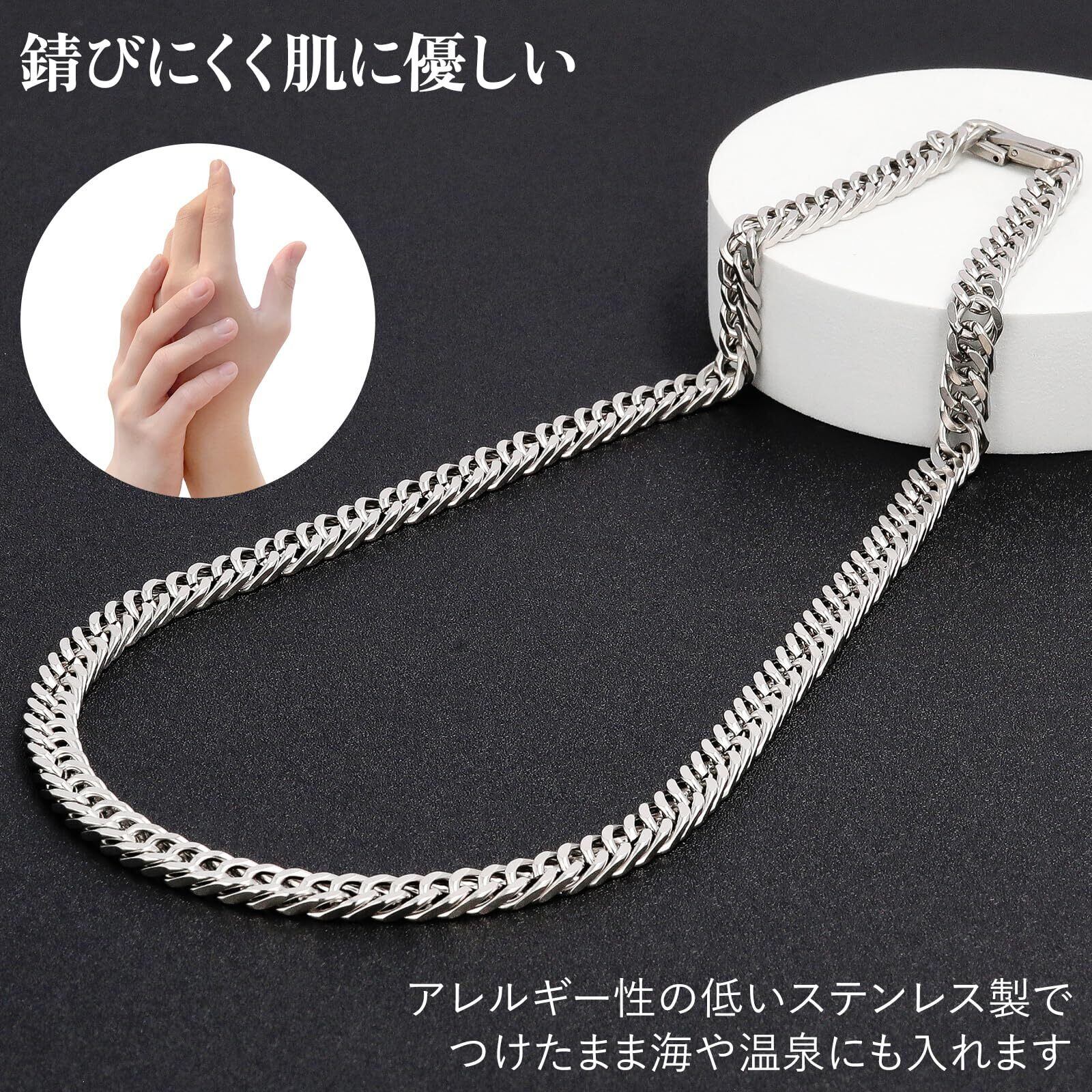 【安心のステンレス素材で金属アレルギー対応!】本製品は高品質なステンレスを使用しており、金属アレルギーの方でも安心して身につけられます。耐久性が高く、錆びにくい特性を持つため、日常使いに最適です。水や汗に強く、気軽にお手入れもできます。