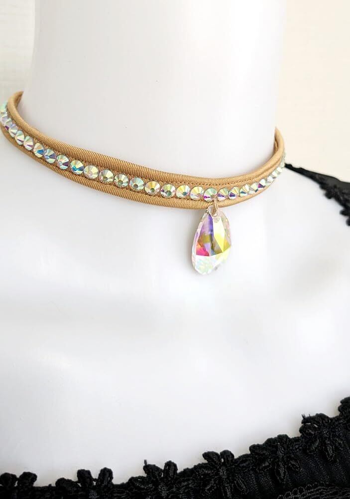 社交ダンス、ベリーダンス、各種発表会などラインストーンがキラキラと映えるゴージャスなチョーカーです。