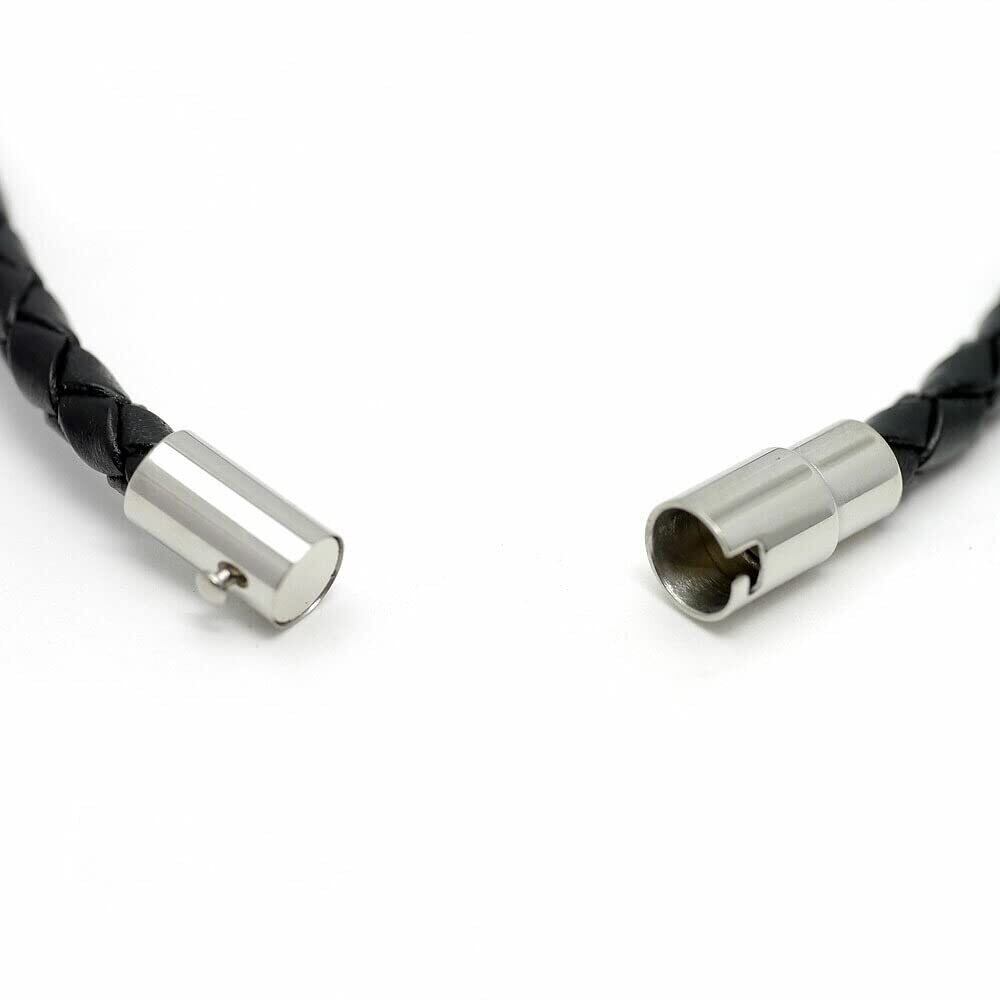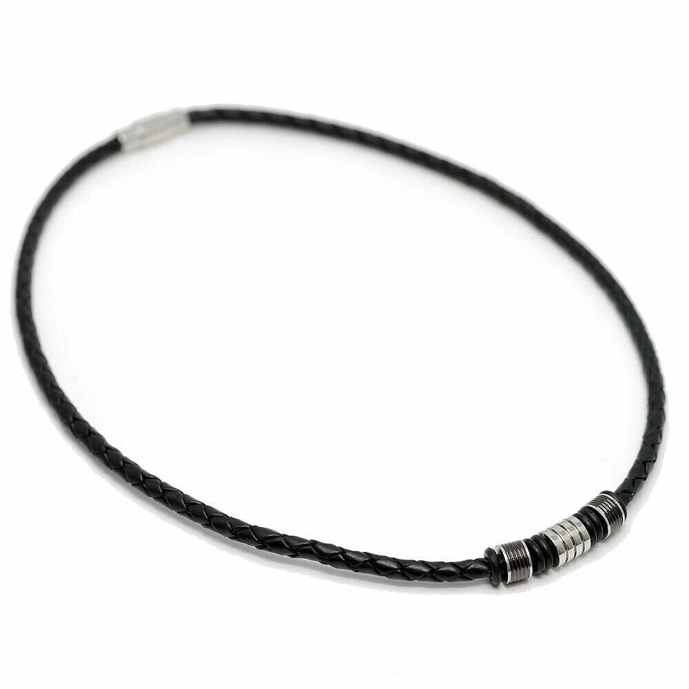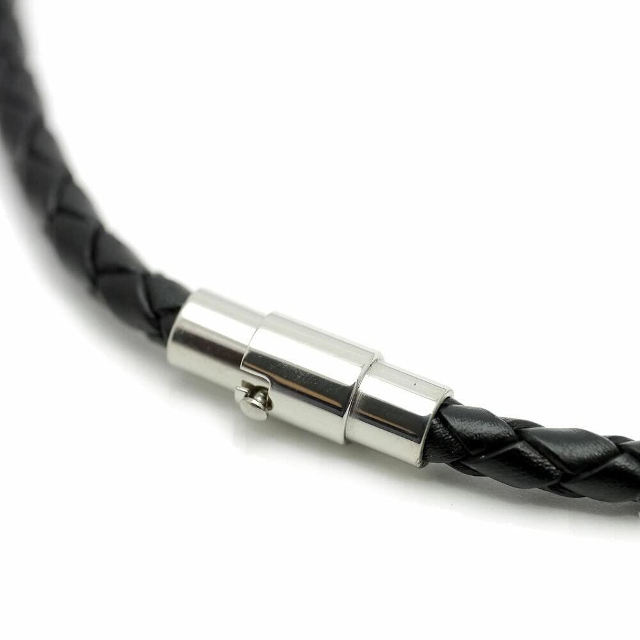 [シルバーワン] ワンポイント 編み込みチョーカー メンズ ko [黒レザー細目 マグネット式 ブラック 長さ45cm/50cm]