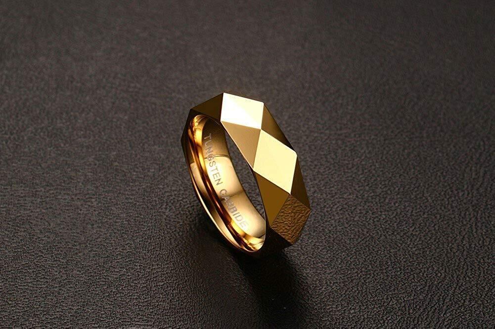 【Rockyu 指輪】 タングステン リング メンズ おしゃれ レディース 指輪 ゴールド 6mm 多面カット指輪 23号 男女兼用 幅:6mm タングステン比重:金とほぼ同じ、硬度:ダイヤモンドに匹敵、タングステンは耐久性に優れ、傷がつきにくいため、いつまでもその高度な輝きを失いません。【シンプルなデザイン】大人の男性にもピッタリのさりげなく男らしさを与えてくれる魅力的なタングステン指輪。