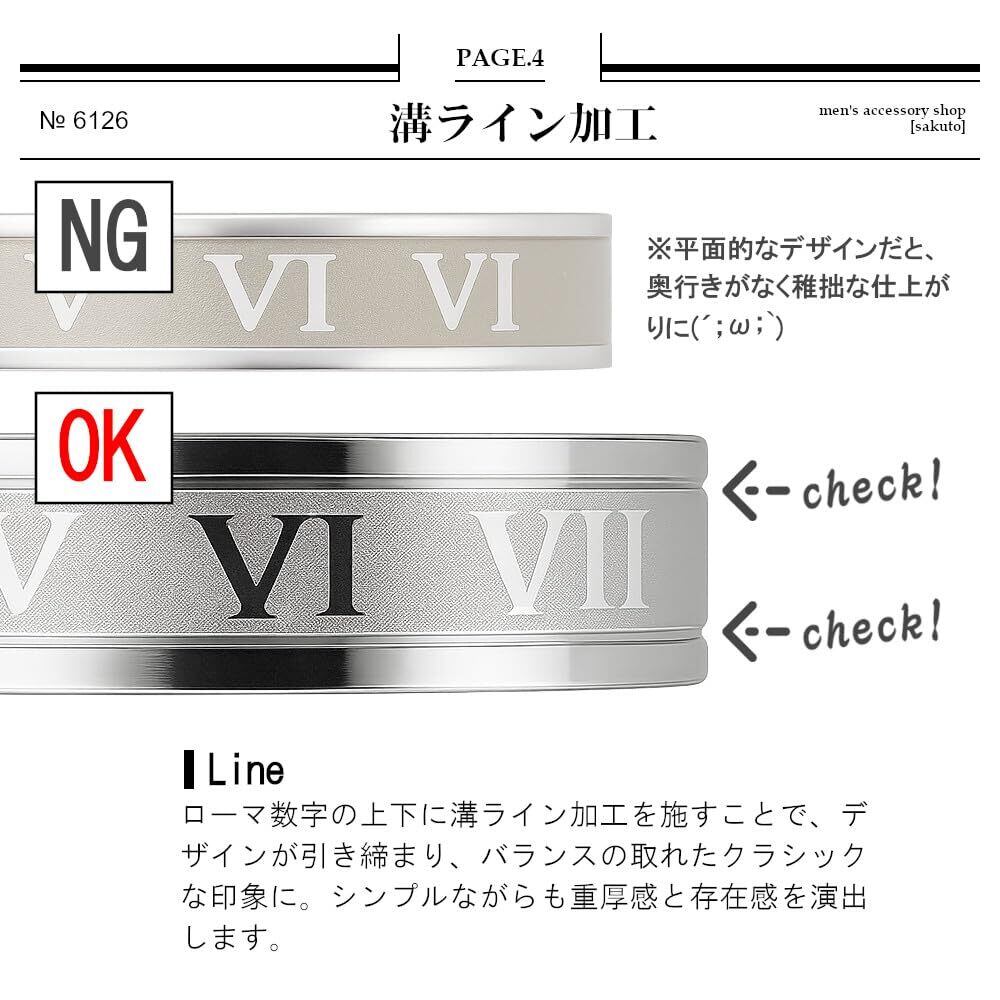 【スタイリッシュなローマ数字デザインが魅力!】「[sakuto] 指輪 メンズ ローマ数字 リング」は、幅6mmのシンプルなデザインに、エレガントなローマ数字が施されたメンズリングです。洗練されたデザインは、カジュアルな日常使いはもちろん、特別なシーンでの着用にも最適です。手元にアクセントを加え、あなたの個性を際立たせる一品です。
