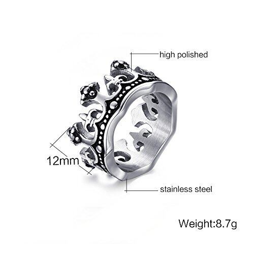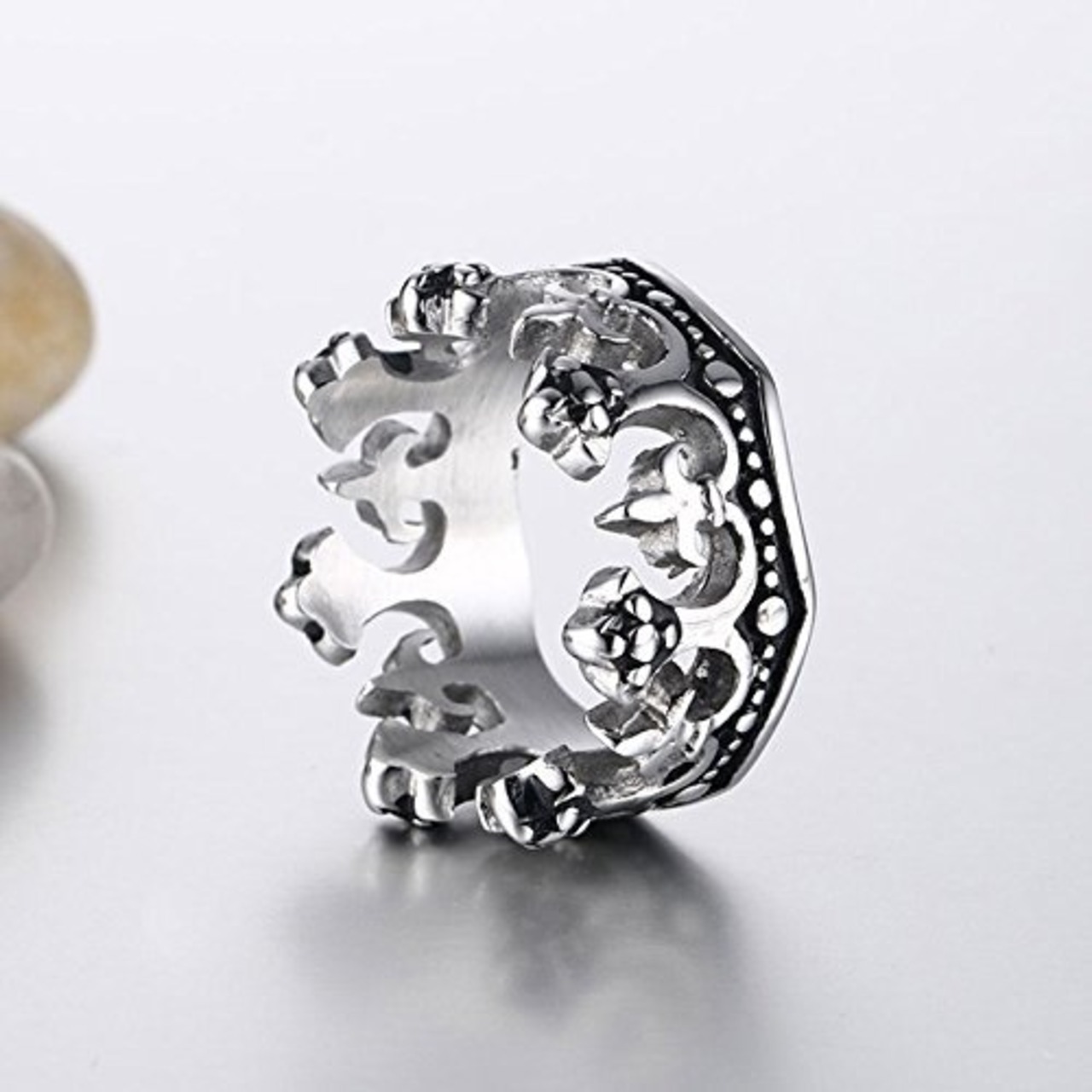 【Rockyu 指輪】 クラウン 指輪 ステンレス 20号(指周り:62.4mmに合う) クラウン 十字架指輪 王冠 金属アレルギー対応 男女兼用リング