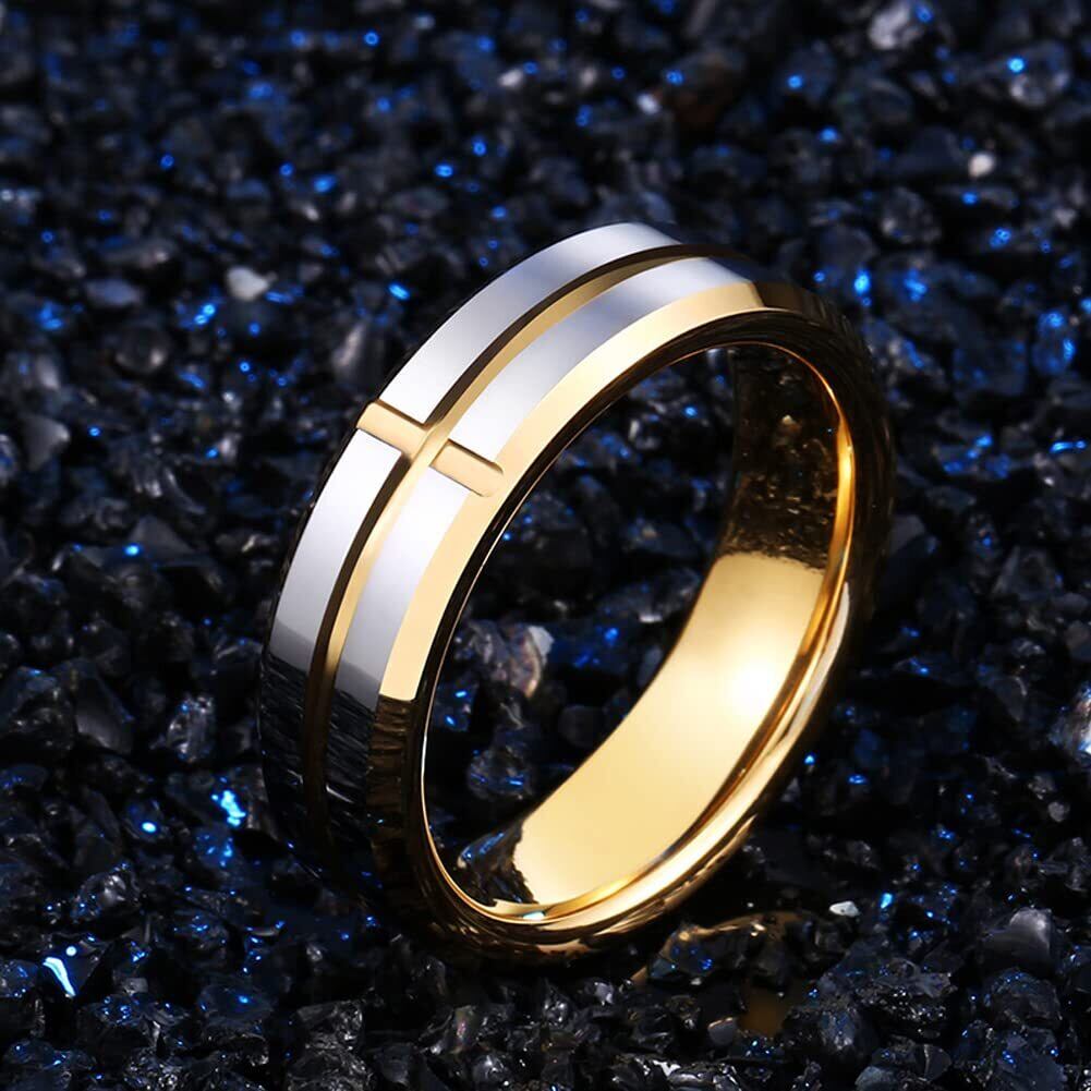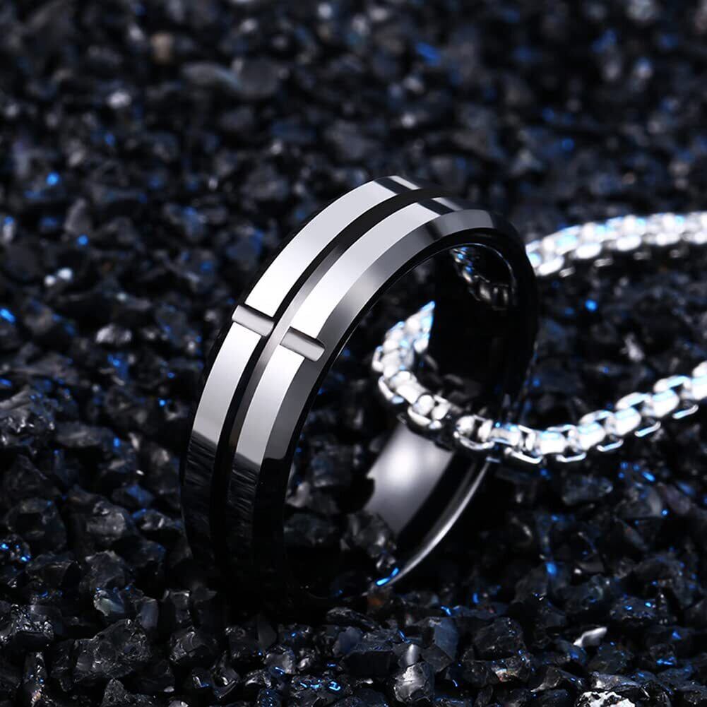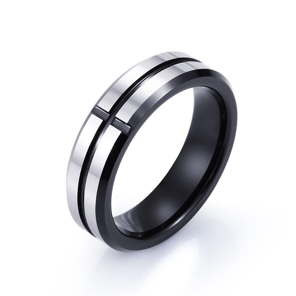 【クロスデザイン】 シンプルで着用しやすいデザイン、派手過ぎず、地味過ぎない、ちょうど良い存在感が魅力の十字架リングです。普段使いでもフォーマルでも大活躍する、カッコいいタングステン指輪です。