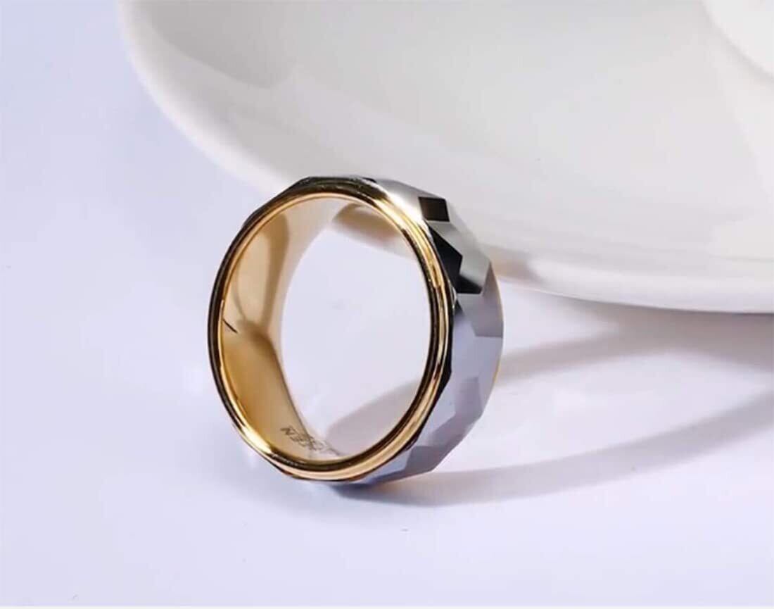 「ンズ指輪」カット面が滑らかで角度をかえてみると輝いて見えます。加工がとても丁寧で指の付け根に触れても気になりません。 タングステンなので、キズがつきにくくて、錆びないです。金属特有の冷たさは無く、冬の季節の使用は良いです。男性の結婚指輪やギフト等にも最適ですが、シンプルで着用しやすいデザイン、派手過ぎず、地味過ぎない、ユニセックスにお楽しみいただけます。